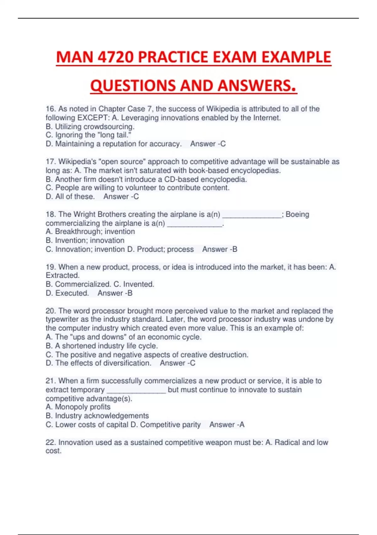 MAN 4720 PRACTICE EXAM EXAMPLE QUESTIONS AND ANSWERS, RATED A.