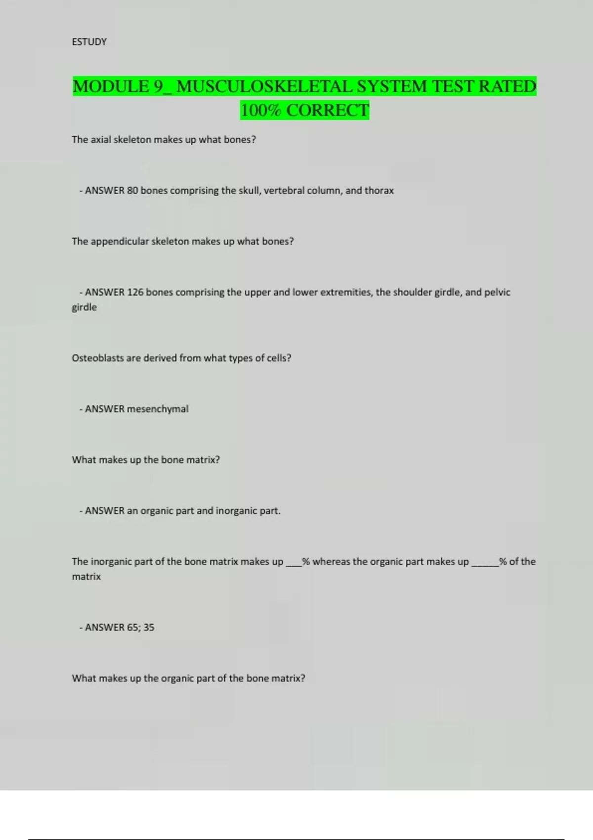 MODULE 9_ MUSCULOSKELETAL SYSTEM TEST RATED 100% CORRECT