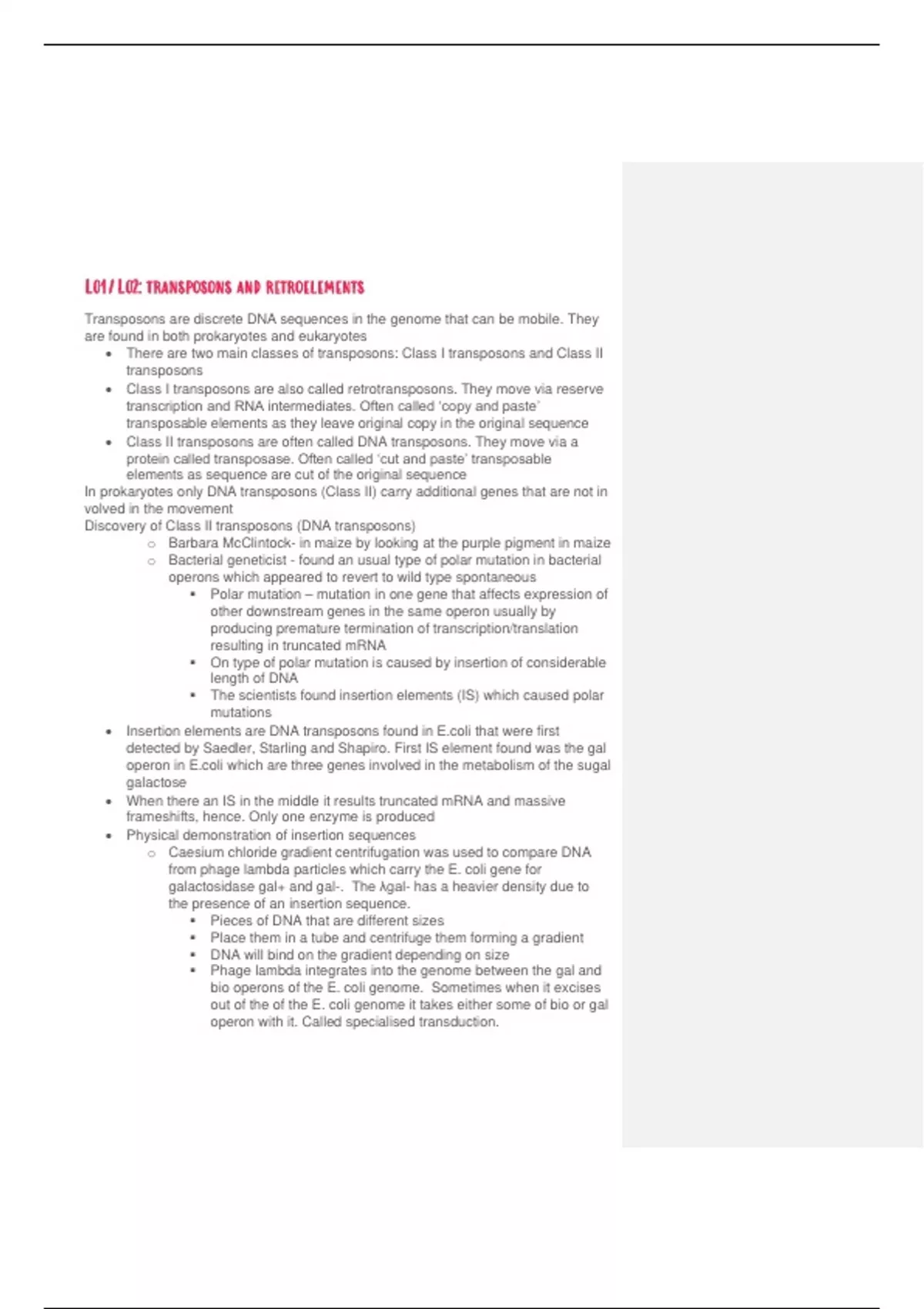 L01/L02: transposons and retroelements