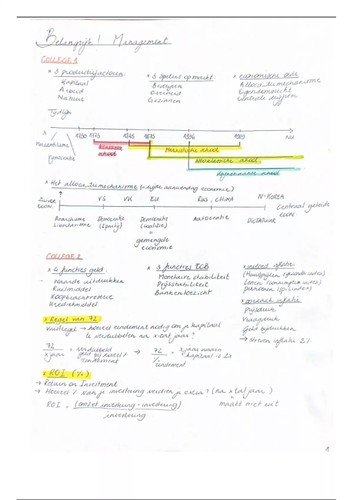 Samenvatting Oefeningen + schema belangrijkste leerstof management