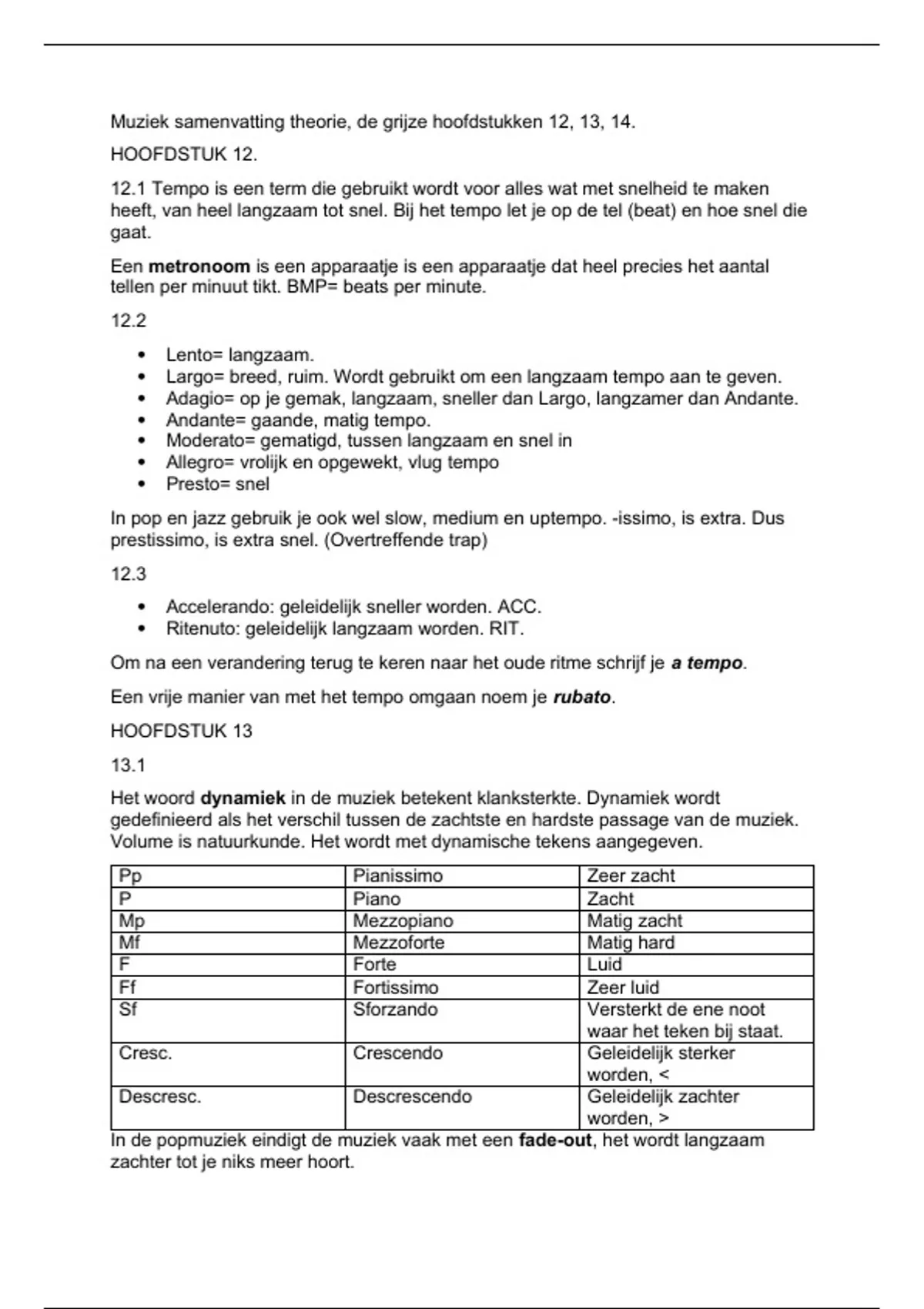 Muziek samenvatting theorie, de grijze hoofdstukken 12, 13, 14.
