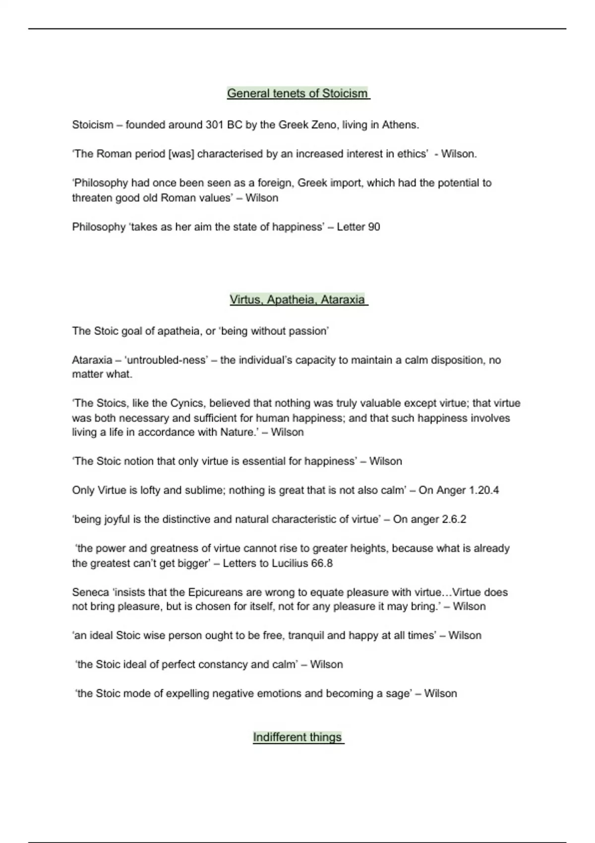 ‘The Stoic notion that only virtue is essential for happiness’ – Wilson