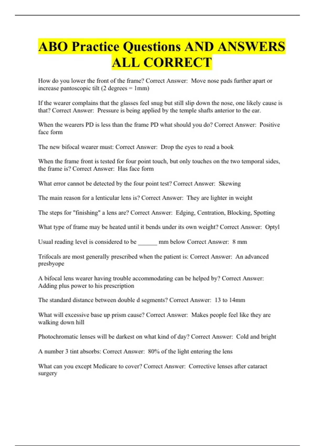 ABO Practice Questions AND ANSWERS ALL CORRECT