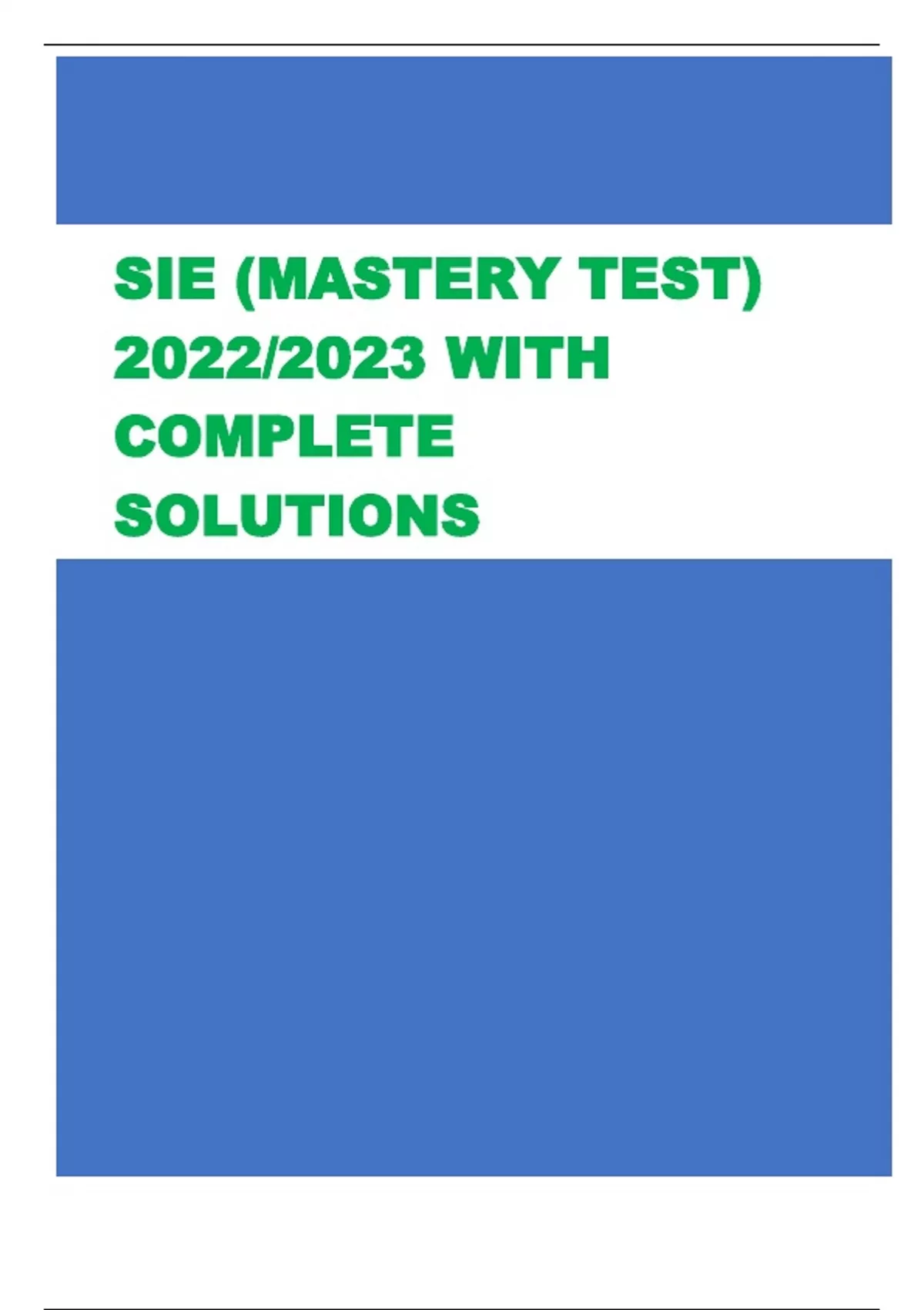 SIE (MASTERY TEST) 2022/2023 WITH COMPLETE SOLUTIONS