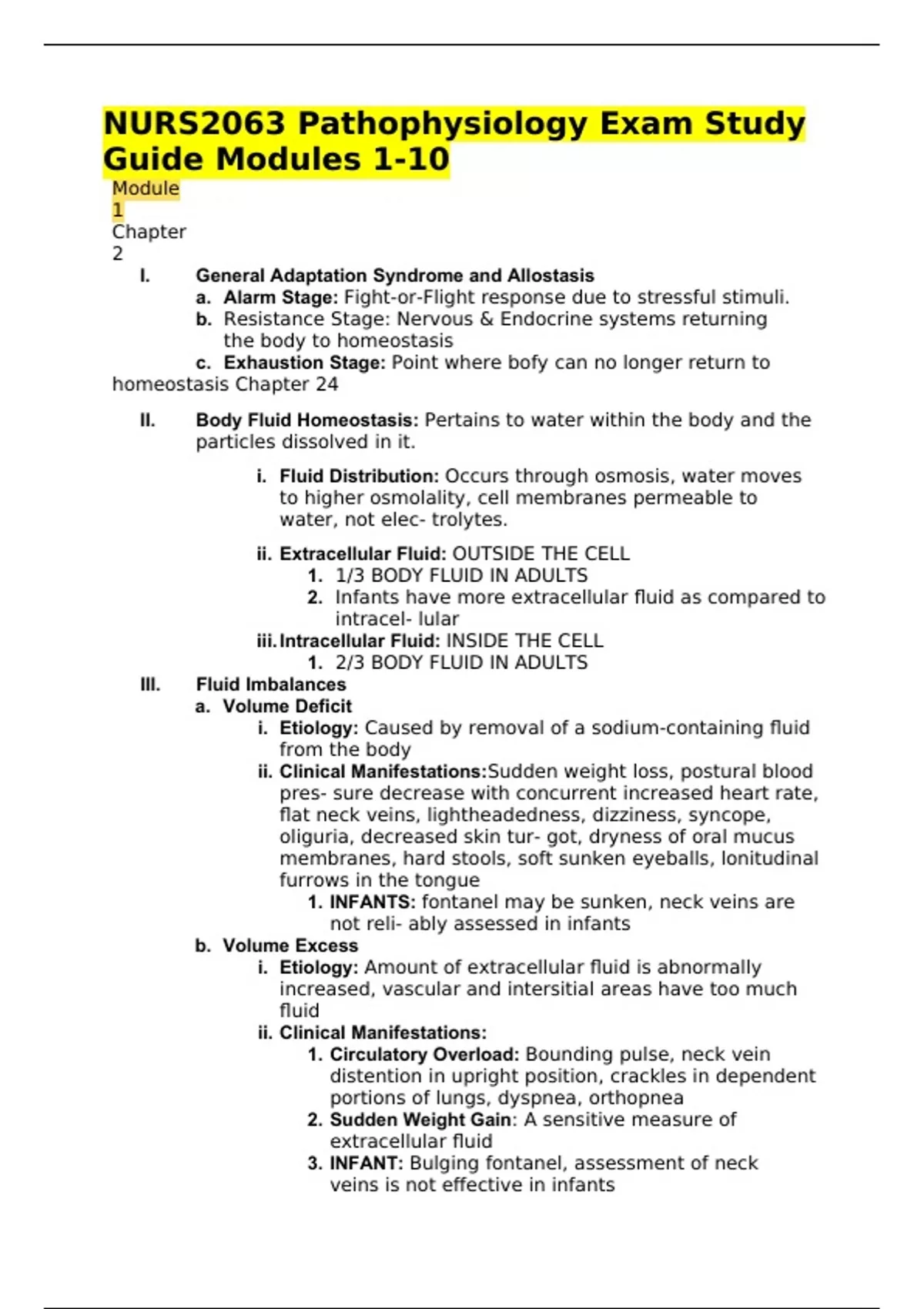 NURS2063 Pathophysiology Exam Study Guide Modules 1-10