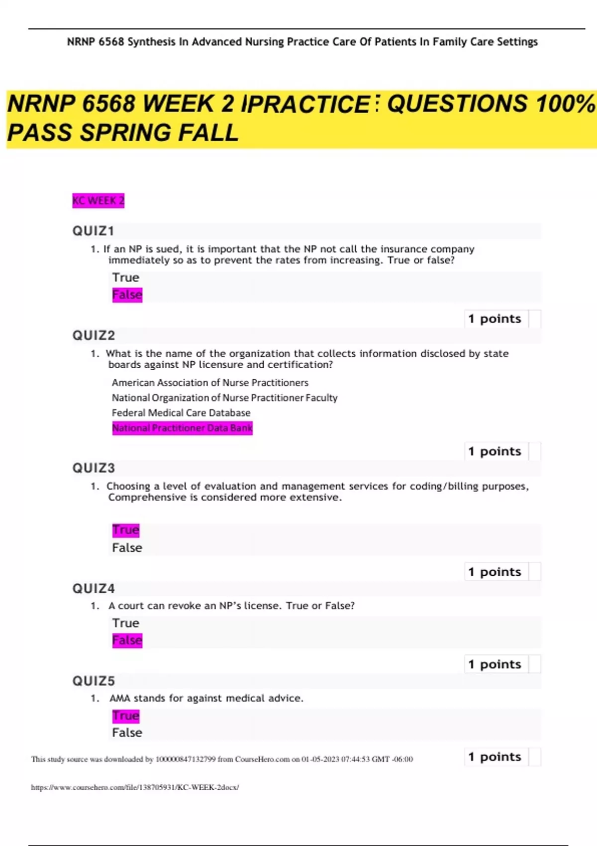 NRNP 6568 WEEK 2 PARACTISE QUESTIONS 100% PASS SPRING FALL