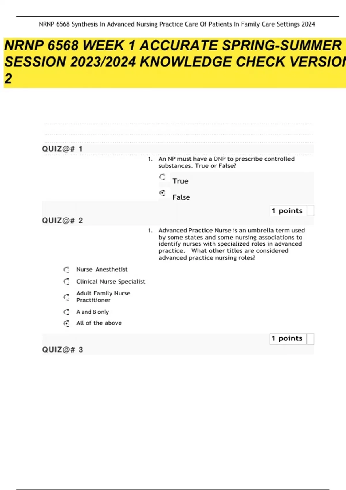 NRNP 6568 WEEK 1 ACCURATE SPRING-SUMMER SESSION KNOWLEDGE CHECK VERSION 2