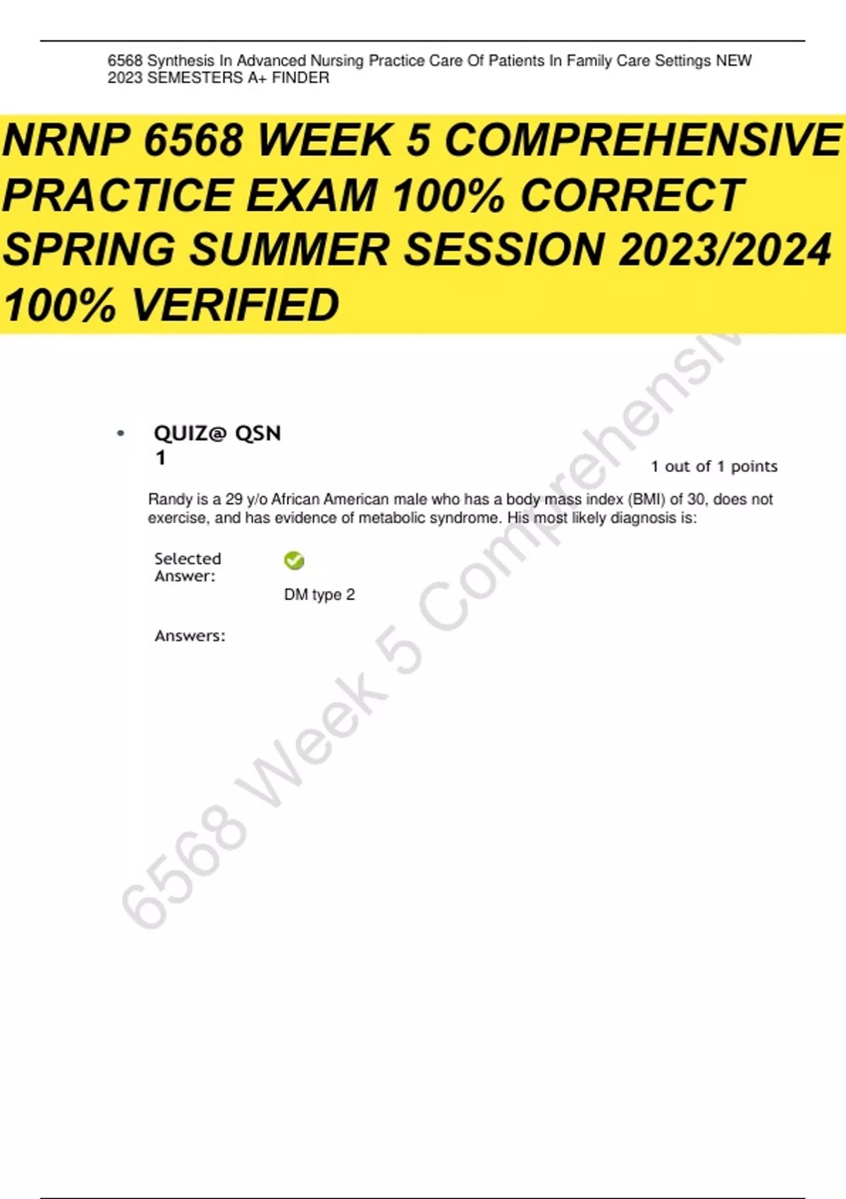 NRNP 6568 WEEK 5 COMPREHENSIVE PRACTICE EXAM 100% CORRECT SPRING SUMMER SESSION 2023/2024 100% VERIFIED