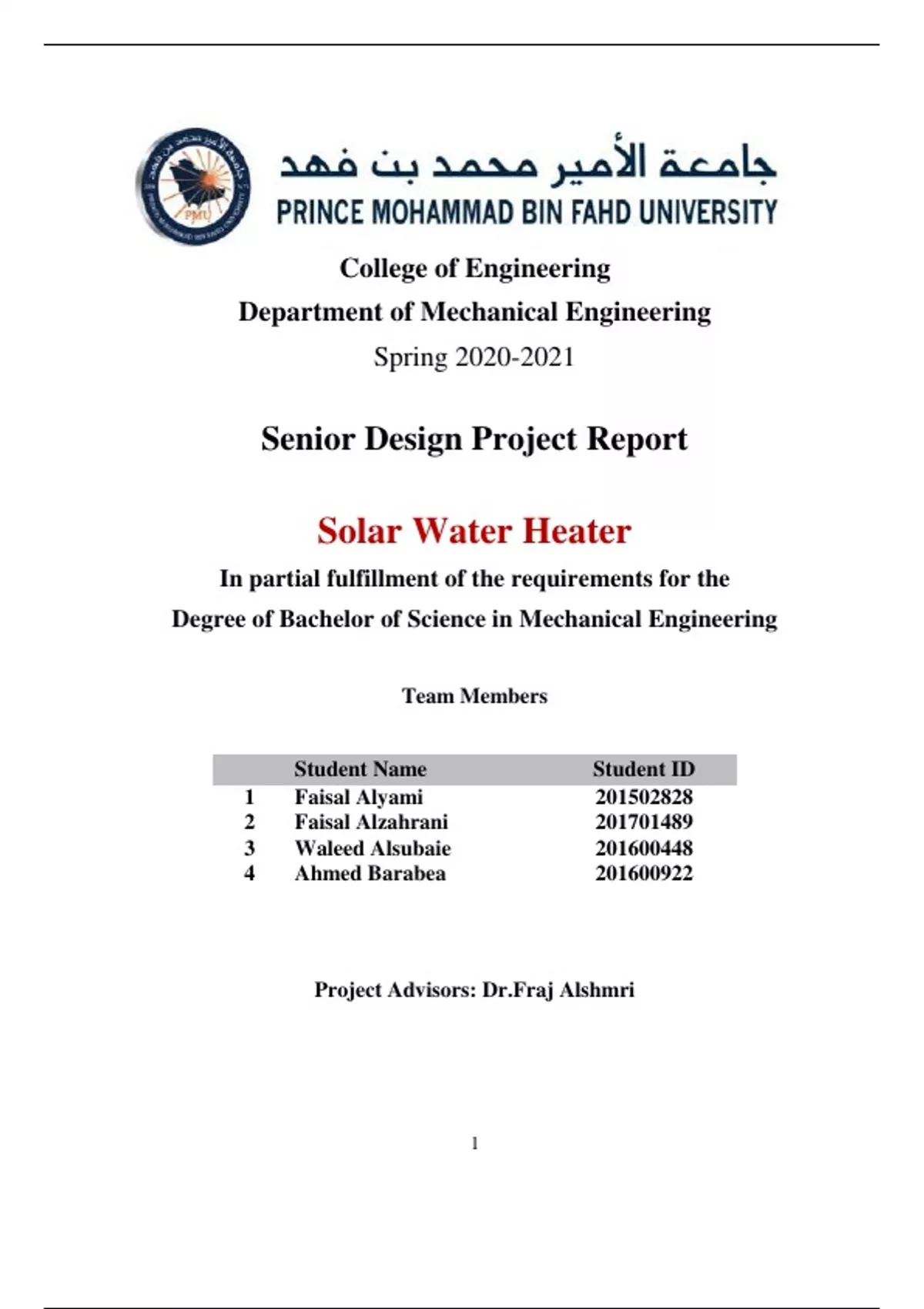 CHAPTER 1: INTRODUCTION 1.1 Project Definition This project is intended to design a water heating system by using solar technology. There are various design and manufacturing constraints but here the most general and efficient way would be used. It includes thorough study of the mechanism of the solar water heater. After designing such mechanism, the heater would be manufactured, and the results would be presented. Solar energy technology is used in various places in different ways. It is used to produce electricity and it provides energy which is used to cook food. Solar systems are designed in such a way that water can be heated to any temperature. But at domestic levels water can be heated up to 60 ⁰C. Evacuated types of solar heaters and glazed plate heaters are the most common types of solar powered water heaters used in the world. Some of the systems are active and others are passive. Active systems are divided into direct and indirect solar systems. In this project indirect solar system will be designed. The mechanism of our solar heater will resemble as shown in figure 1. Figure 1 Solar Heater system 10 1.2 Objectives of the project The main objectives of the project are as follows: Study, design, and analysis of the active solar water heating system according to the domestic applications. Modern techniques would be used to choose the economical and easily available techniques to design the solar heating system. Design calculations would be done where needed with the help of research and analysis. Fabrication of the solar heating system with the economical and easily available materials. 1.3 Project Specifications There are many aspects which would be looked after while designing a safe and economical systems. For the solar heater following are the main sections. Heat Collection Heat transfer Heat storage Heat backup Extreme temperature protection. These aspects are explained in the figure 2. 11 Following are the main components of the solar heater. Solar collector panel Storage tank Heat Exchanger Expansion tank Control System While the collector panel consists of absorber plates, tubes, glazing, thermal insulations and casing. 1.4 Applications Solar water heater can be used in domestic, commercial, and industrial applications. They are enlisted below: Figure 2 Main aspects of Solar Heater 12 Domestically hot water is used in bathing, washing of utensils and clothes and cleaning floors. Water requirement for a house depends on the number of family members. For a 4 members family, each consuming approximately 25 liters, on average above 100 liters are required. In commercial applications, a large quantity of water is required. For this purpose, large scale heating systems are used. In industries water is used to preheat the boiler water. Hot water is also used in food processing industries. 13 CHAPTER 2: LITERATURE REVIEW 2.1 Background From the beginning of the life on earth, sun has been the most powerful force of nature. It is one of the reasons of the existence of life on earth and contributing a lot as a basic energy source. Due to its large benefits and size, it is regarded as the god in some of the religions. In the past no major benefit was taken by humanity. But as the needs of the human are increasing and other reliable sources are decreasing. Now humans are shifting towards renewable energy sources and sun is one of the biggest sources of renewable energy. In the same way solar energy is used to heat water in the industries, steam is produced by using modern techniques. In California, first solar water heater was utilized to heat the pool water in 1970 (Bennet T, 2007). To get benefit of solar energy first started by Romans and Greeks. They built their house in such a way that solar light directly falls in and warmed their houses. But modern applications of solar energy started in 1883 as the Charles Frits developed first solar cell. In 1970s Europe and Israel invested in solar technology and reduced the cost of photovoltaic cell to compete the oil sector which was dominated by the Arab countries (Ken Butti, John Perlin, 1980). In 1983 about 60% of the households in Israel were using solar heaters to warm the water. By now around 90% of the houses in Israel are using solar water heaters. European countries are investing in solar energy and after China, Germany is producing solar energy. In the 19th century people used wood and other exhausted sources to heat the water. In some areas it was difficult to heat water as the availability of coal, wood and gas was not enough or some areas did not have access to these sources. So, a black painted container was filled with water and 14 exposed to sun. But the main flaw in this system was as the sun set, the water got cooled (Charles Smith, 1995). Solar heaters are divided into two main types. One is passive while the other is active. In passive systems, radiation or heat of the sun is directly used. This heat is either drops on the storage tanks or this heat is transferred to tank which is placed above collectors (Roger Taylor, 2006). Active solar systems are divided into two types. One is direct and other is indirect. In direct active systems, heat is absorbed by the collectors. These collectors may be in any shape. Water is being pushed with the help of pumps to circulate in the pipes surrounding the heat collectors. After heating the water is taken back to the storage tanks. In indirect systems, water is heated with the help of some heat exchanger. In domestic indirect solar heaters, water is heated inside the heat exchanger and then transferred to the storage tank (Harrison J. Tiedman T. 1997). Performance of the solar water heater is affected by the many factors. These includes ambient conditions, collector arrangement and fluid flow rate. It the atmosphere is clear, then sun will fall directly on the collector. Temperature determines the thermal loss from the collector. Area of solar collector and its orientation deter