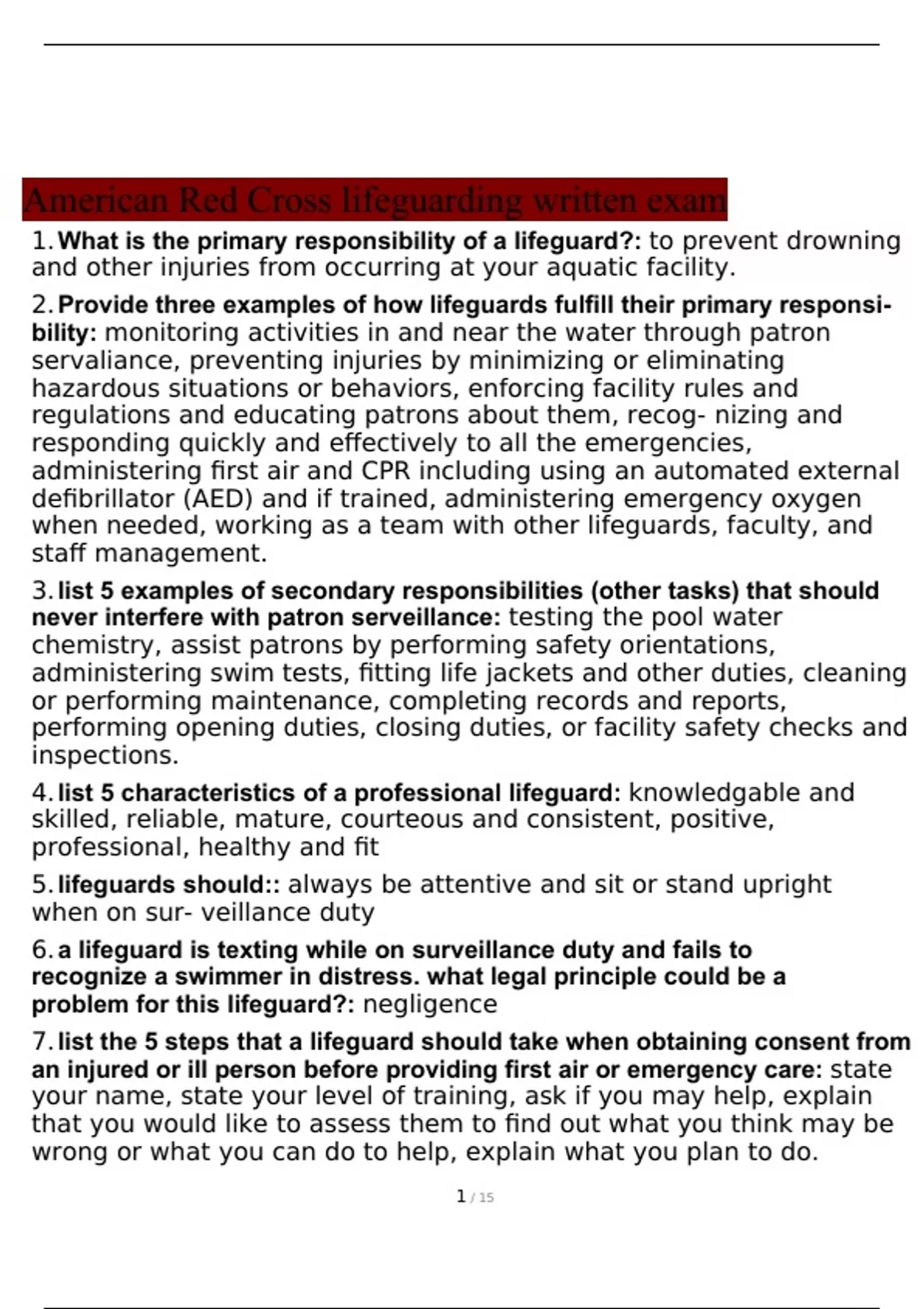 American Red Cross Lifeguarding Final Written Exam 2022/2023 With all Complete Solution