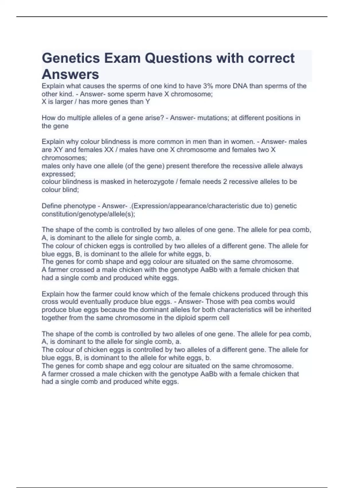 Genetics Exam Questions with correct Answers