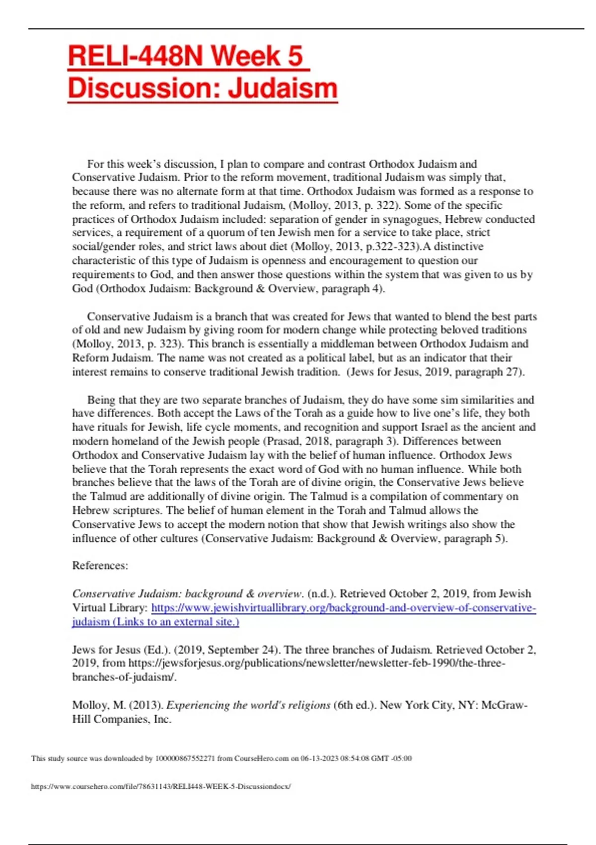 RELI-448N Week 5 Discussion: Judaism