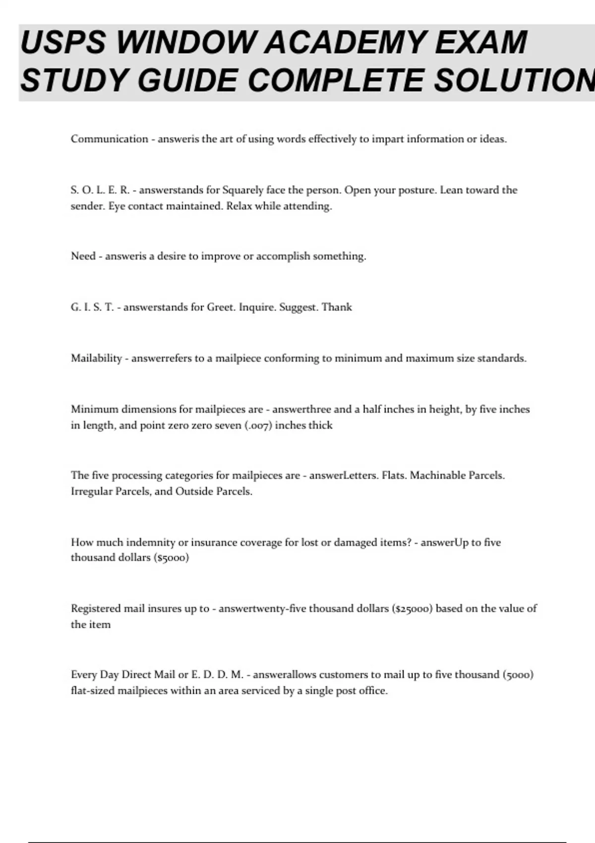 USPS WINDOW ACADEMY EXAM STUDY GUIDE COMPLETE SOLUTION