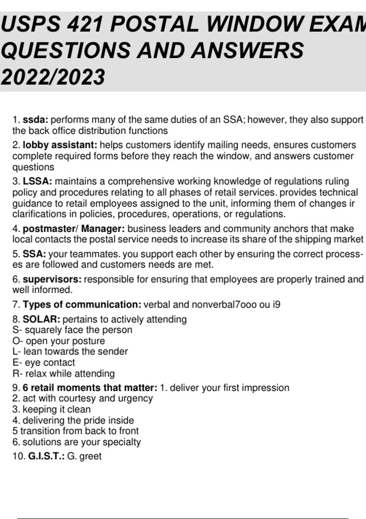 usps 421 postal window exam questions and answers