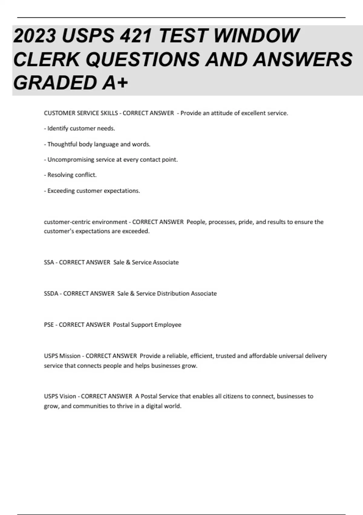 2023 USPS 421 Test - Window Clerk QUESTIONS AND ANSWERS GRADED A+