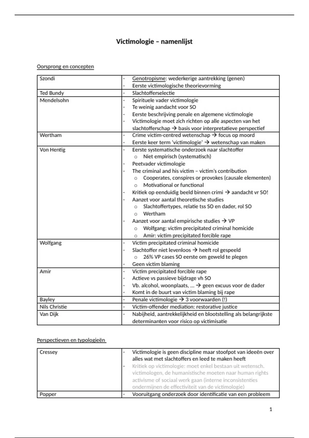 Victimologie – namenlijst