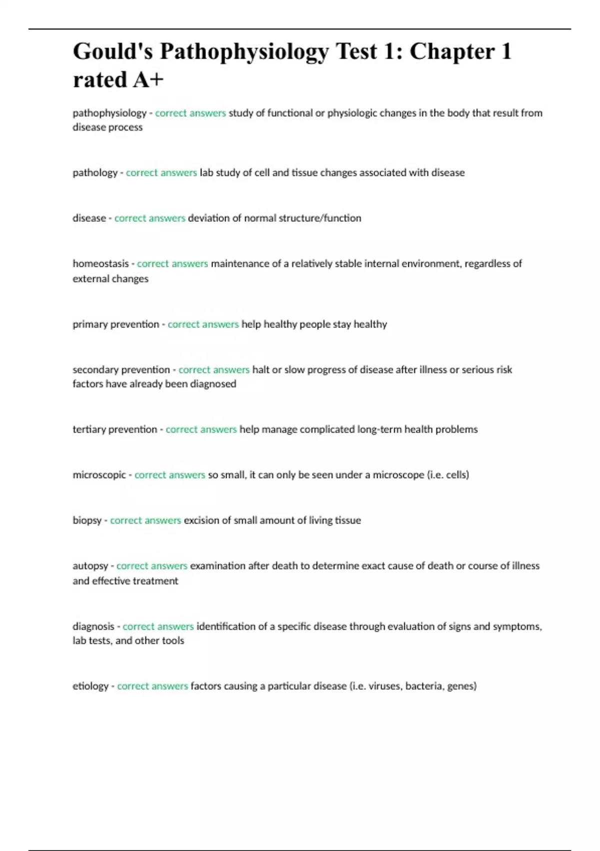 Gould's Pathophysiology Test 1: Chapter 1 rated A+
