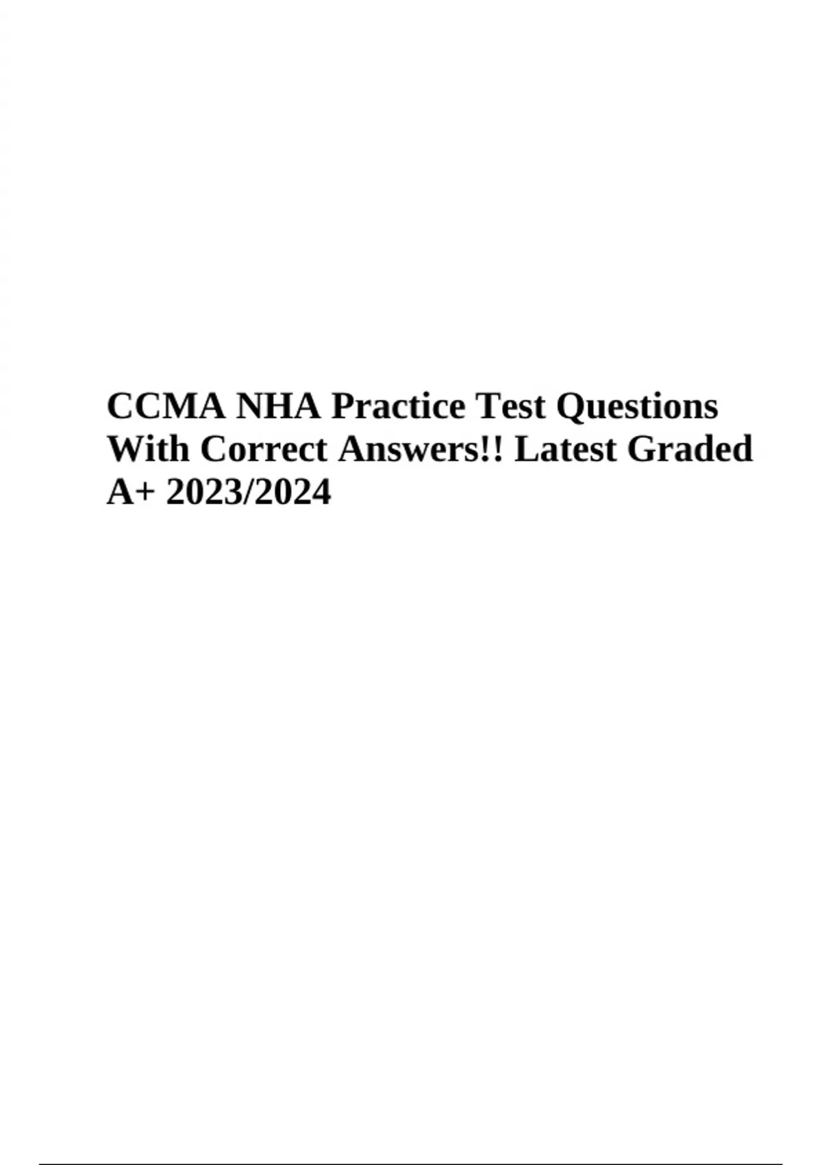 CCMA NHA Exam Practice Test Questions With Correct Answers!! Latest Graded A+ 2023/2024