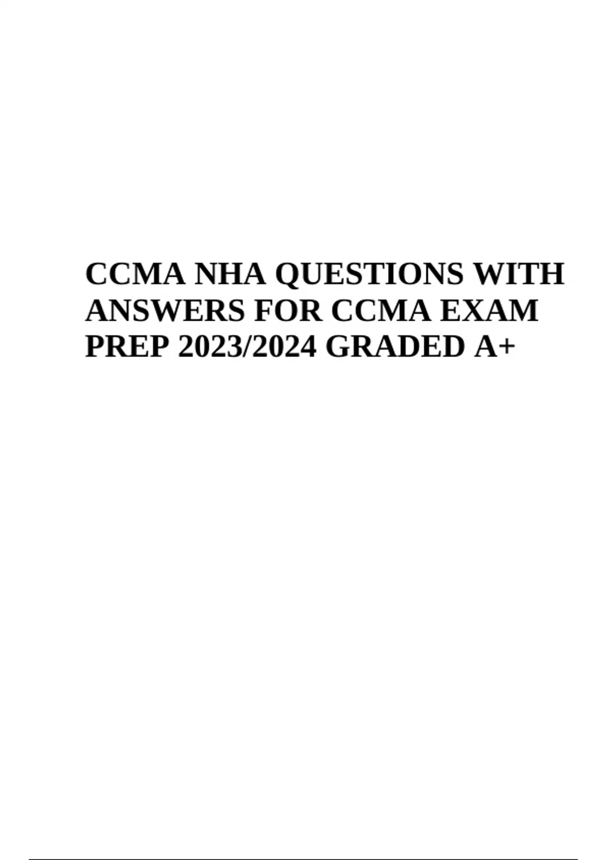 CCMA NHA EXAM PREP QUESTIONS WITH ANSWERS 2023/2024 GRADED A+