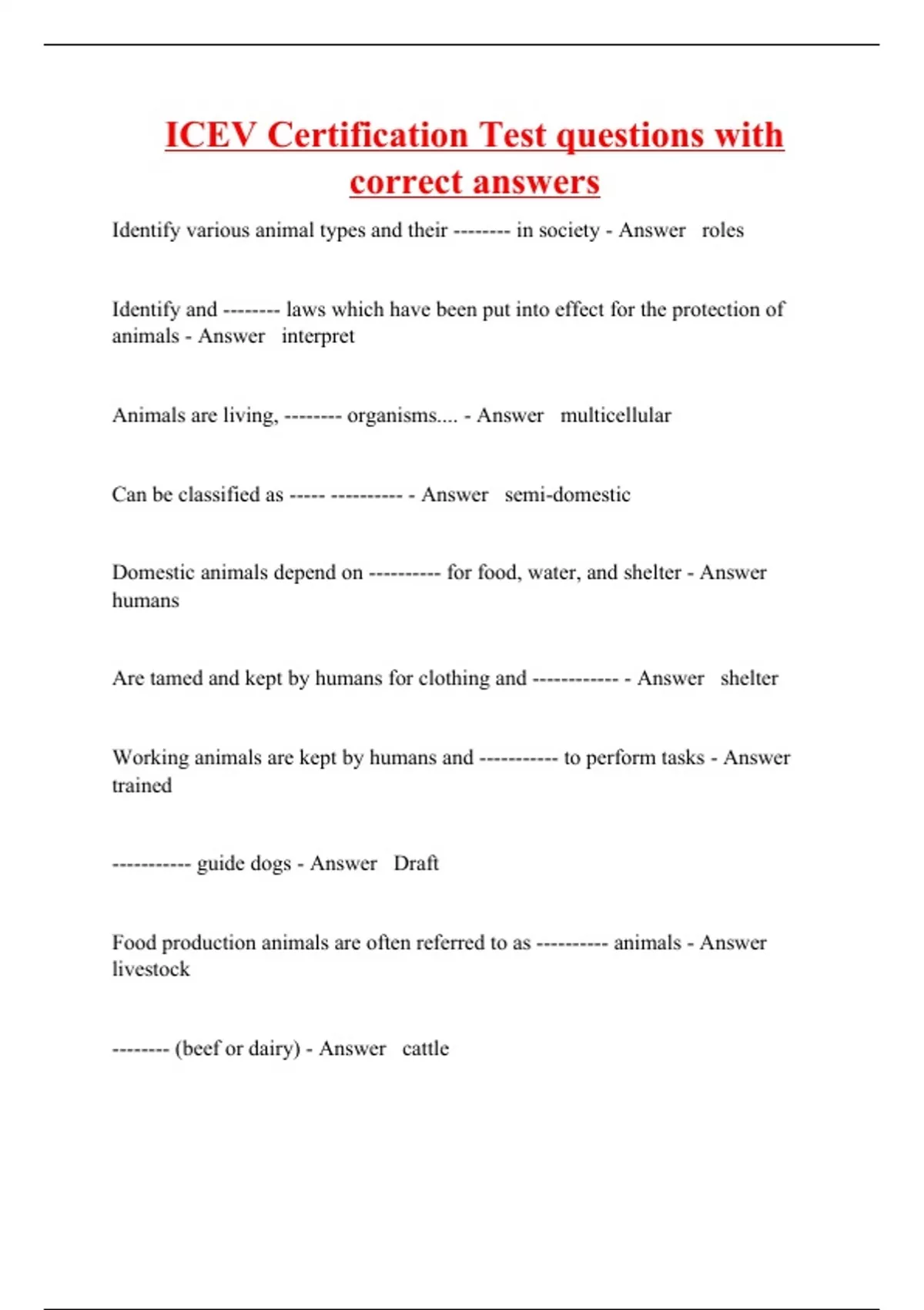 ICEV Certification Test questions with correct answers