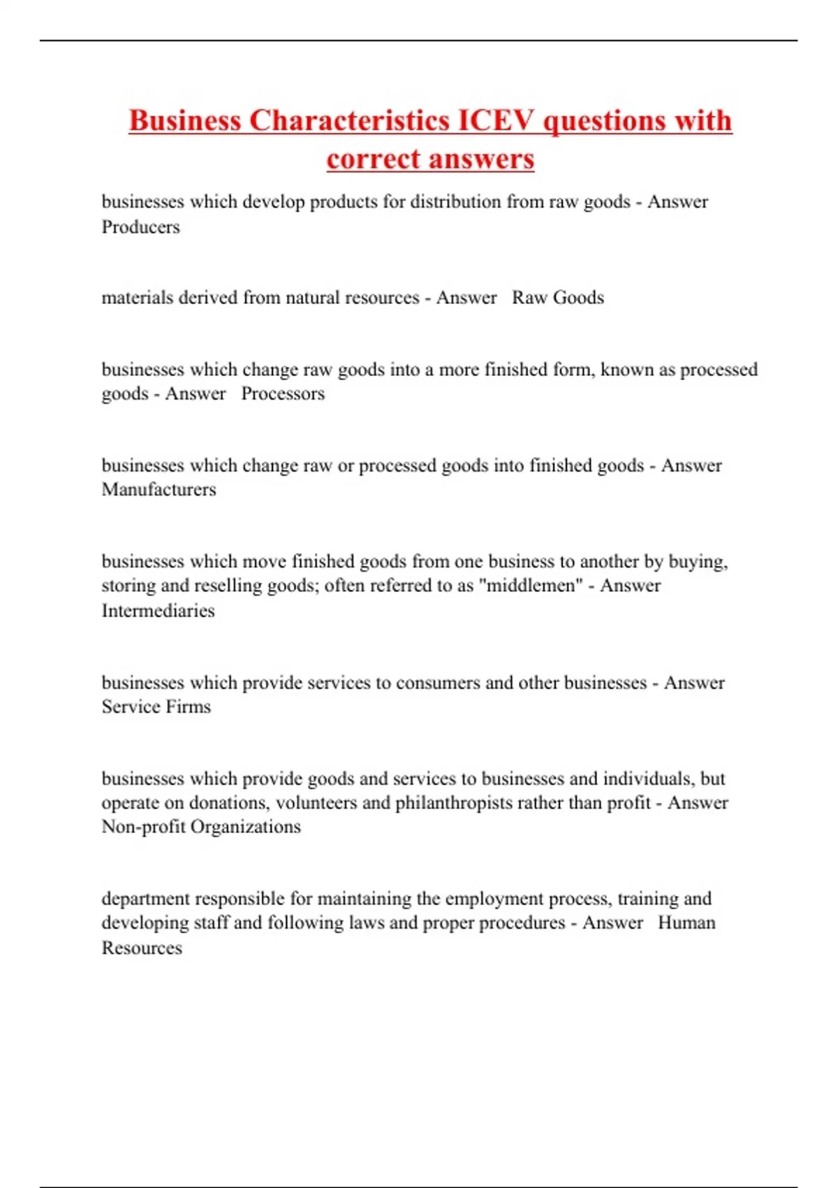 Business Characteristics ICEV questions with correct answers