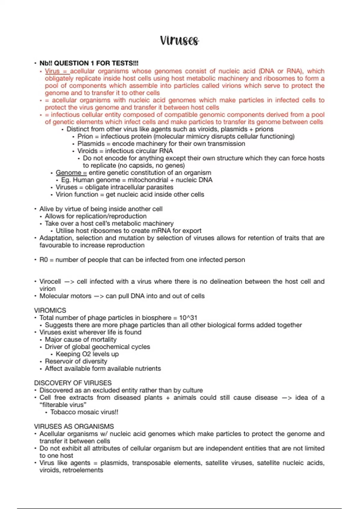 Complete notes covering the viruses and virus reproduction mechanism module of MCB2020f