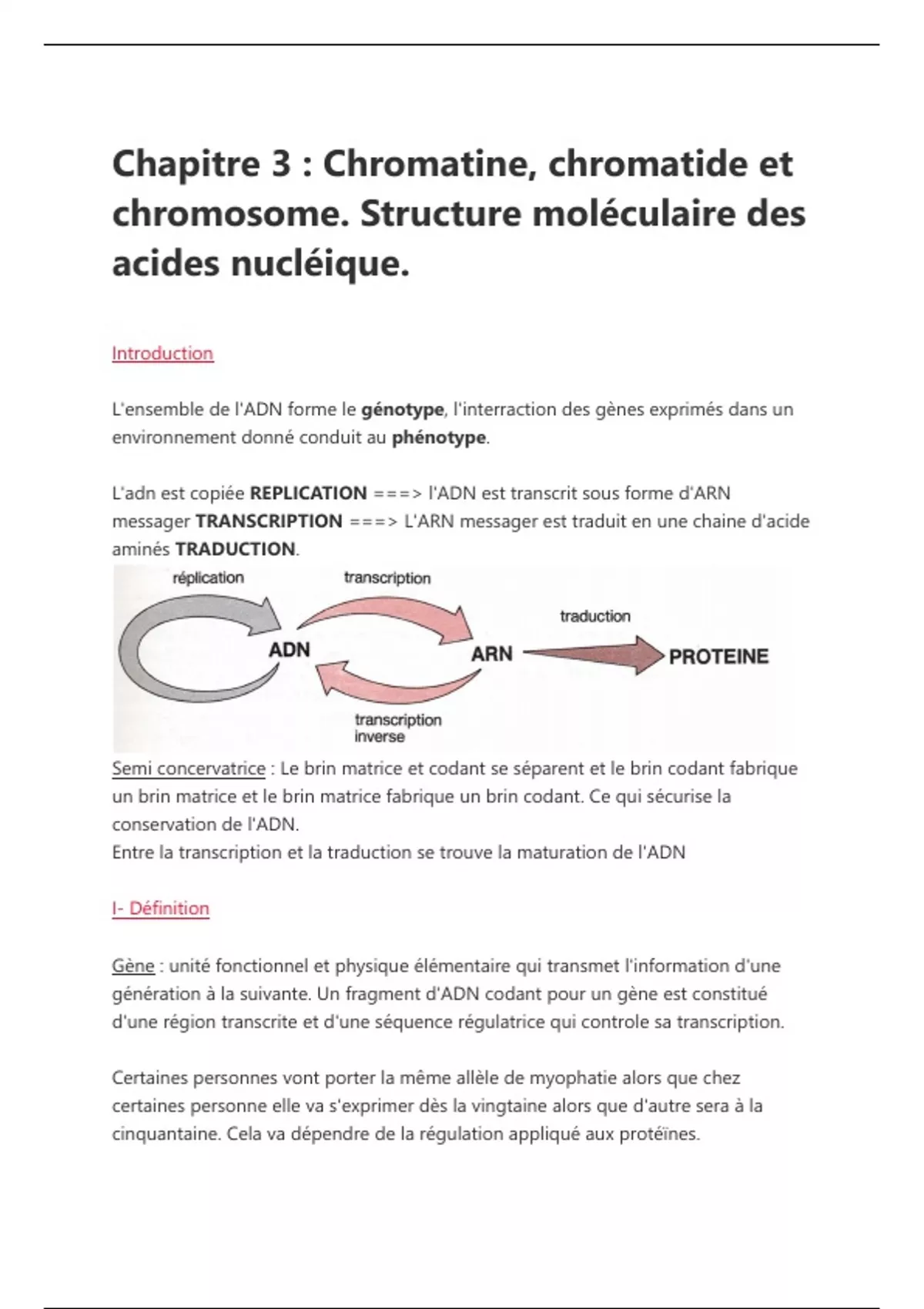 Gène : unité fonctionnel et physique élémentaire qui transmet l'information d'une