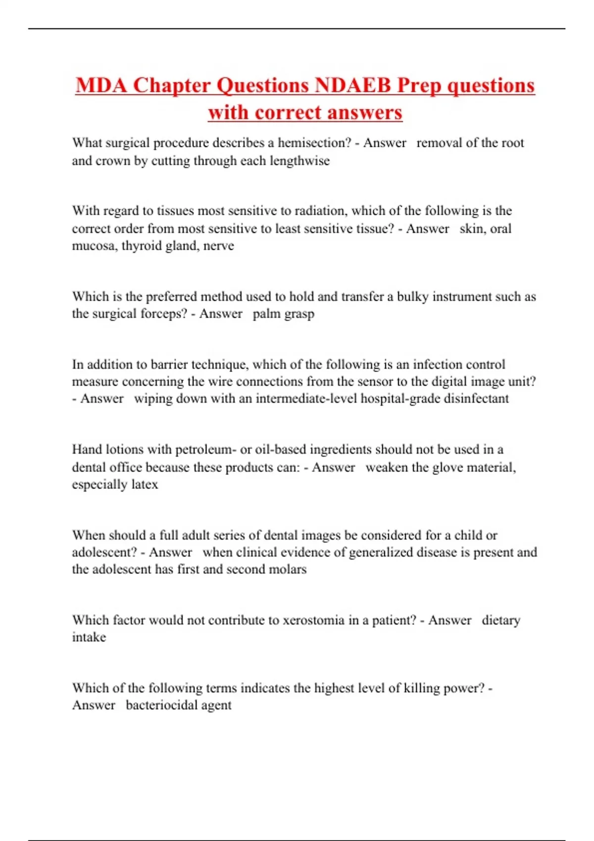 MDA Chapter Questions NDAEB Prep questions with correct answers