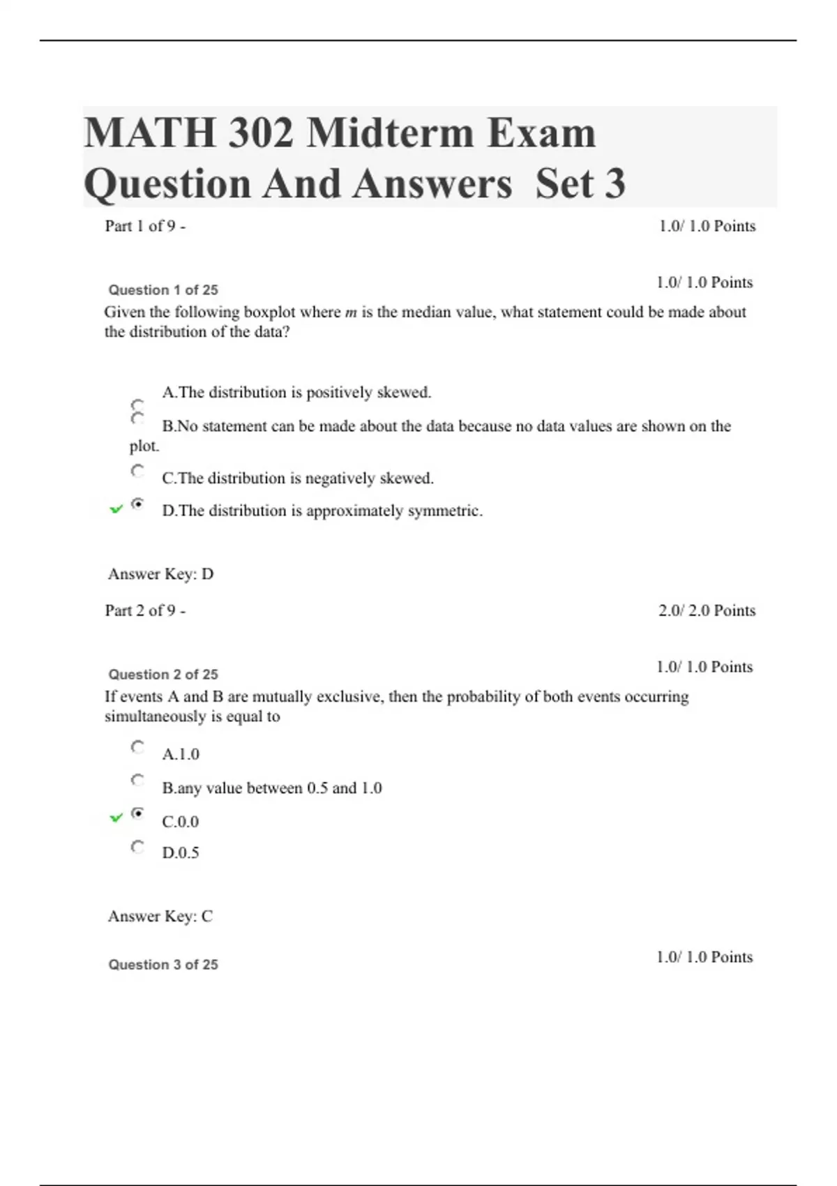 MATH 302 Midterm Exam – Question And Answers – Set 3