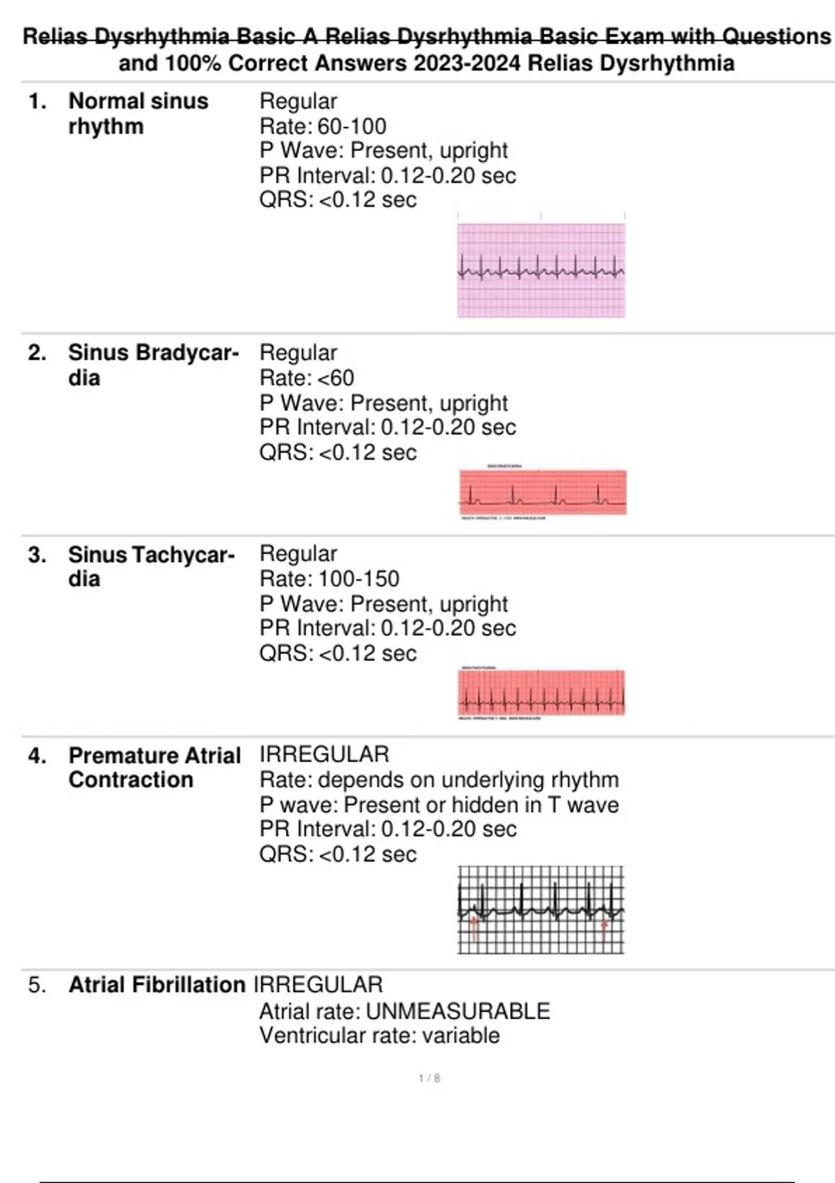 Relias Dysrhythmia Basic A Relias Dysrhythmia Basic Exam with Questions and 100% Correct Answers Relias Dysrhythmia