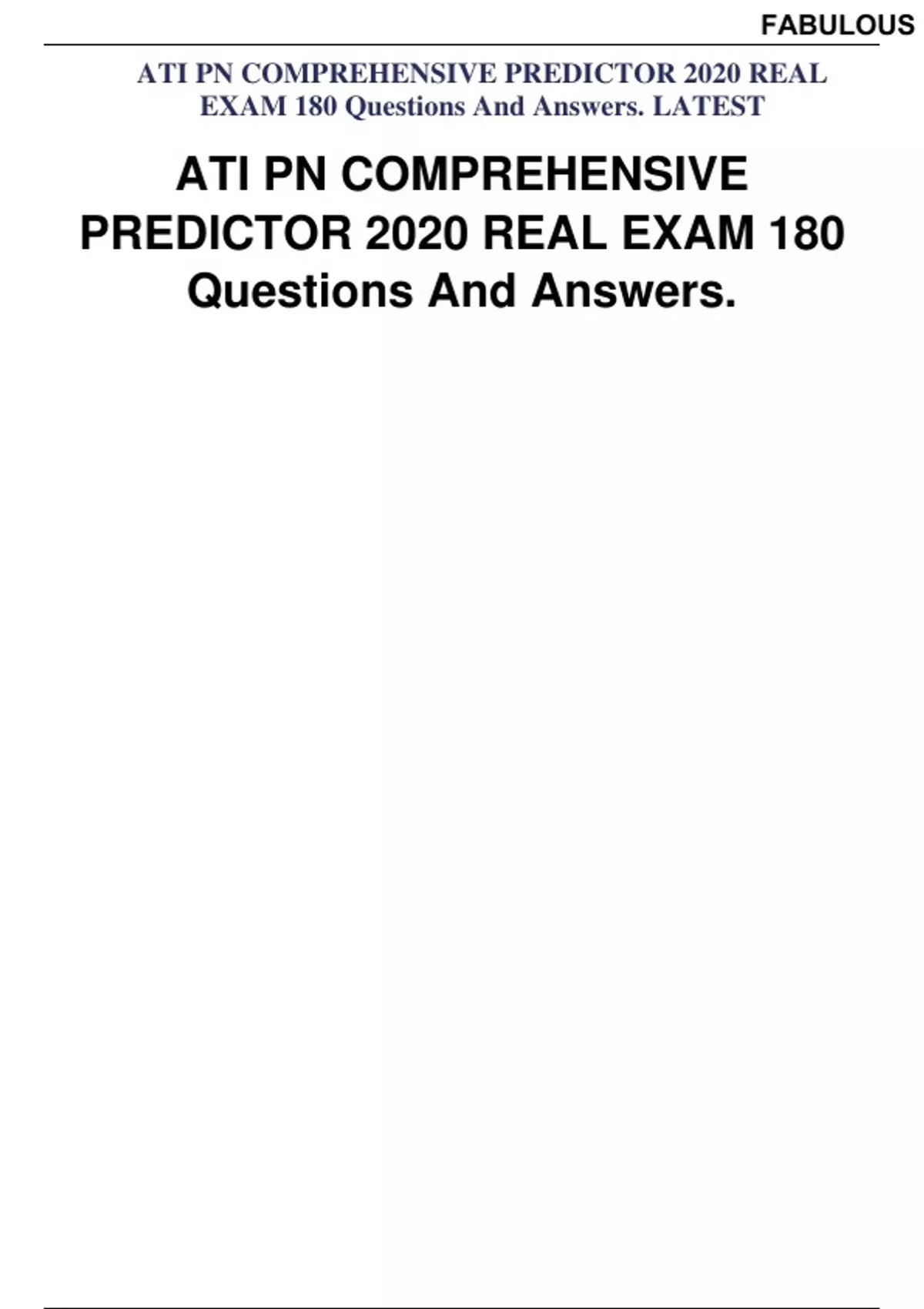 ATI PN COMPREHENSIVE PREDICTOR 2023 REAL EXAM 180 QUESTIONS AND ANSWERS. VERIFIED