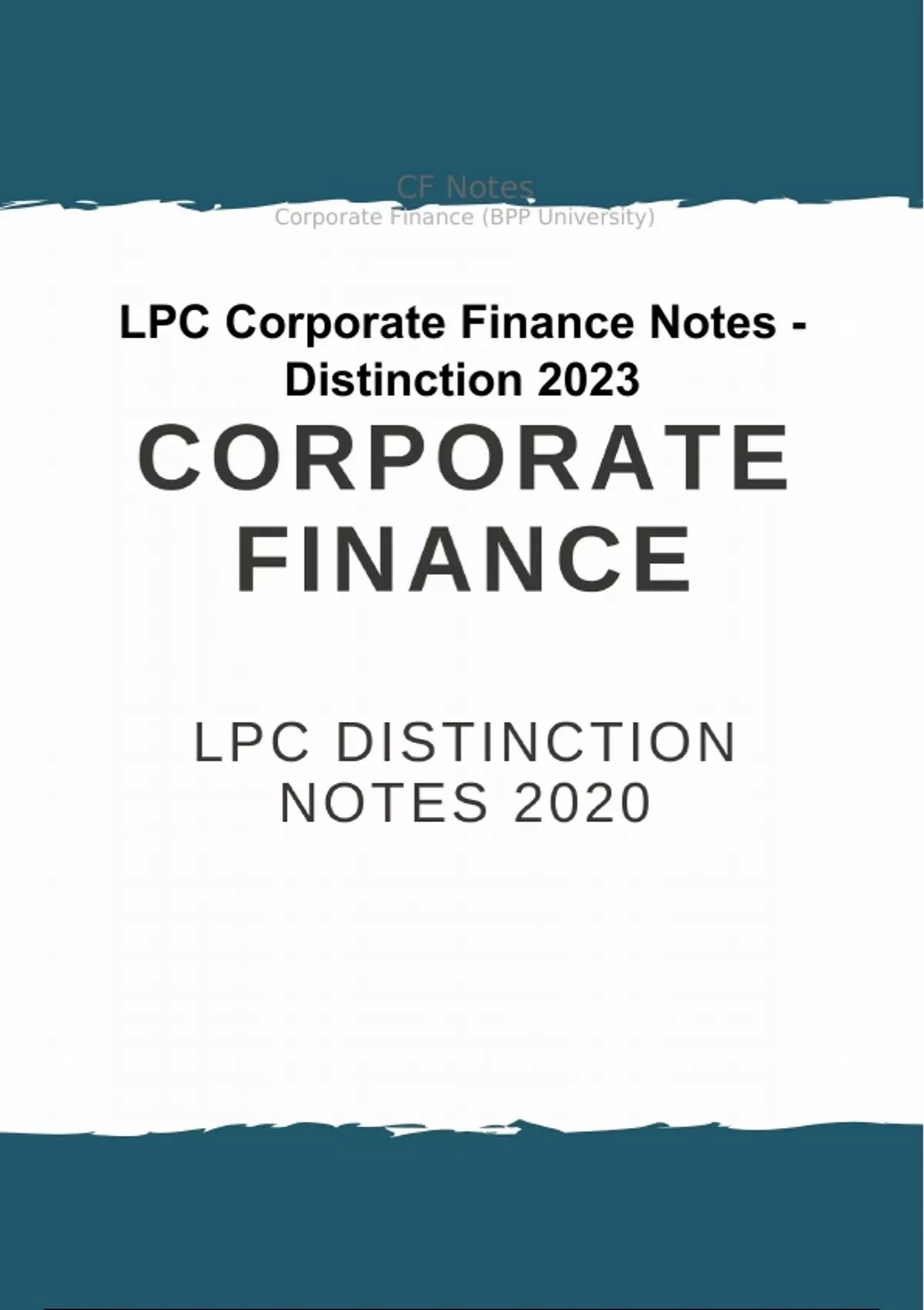 LPC Corporate Finance Notes - Distinction 2023 with complete solution
