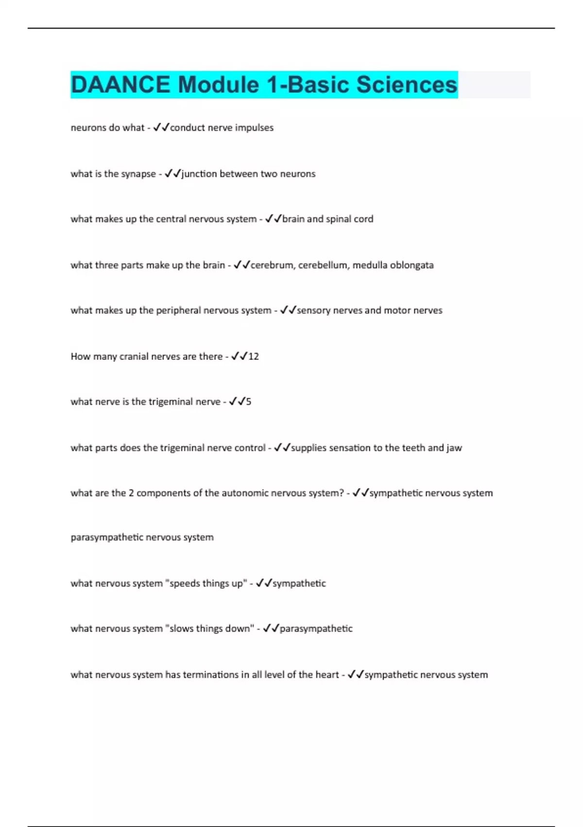 DAANCE Module 1-Basic Sciences | Questions With 100 % Correct Answers | Verified