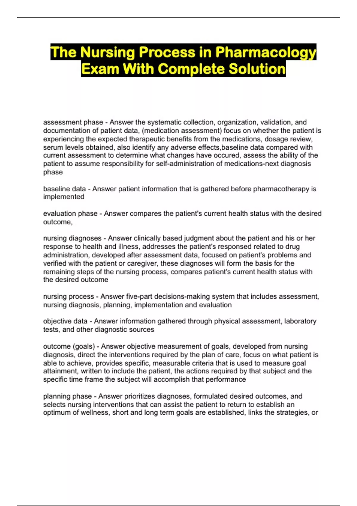 The Nursing Process in Pharmacology Exam With Complete Solution