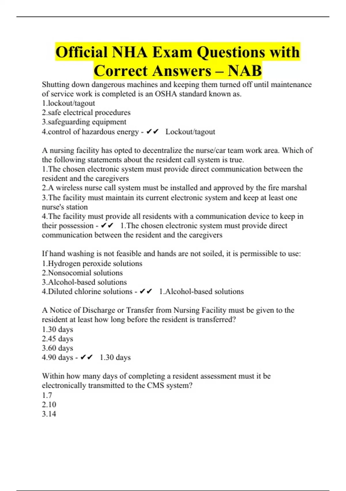 Official NHA Exam Questions with Correct Answers – NAB