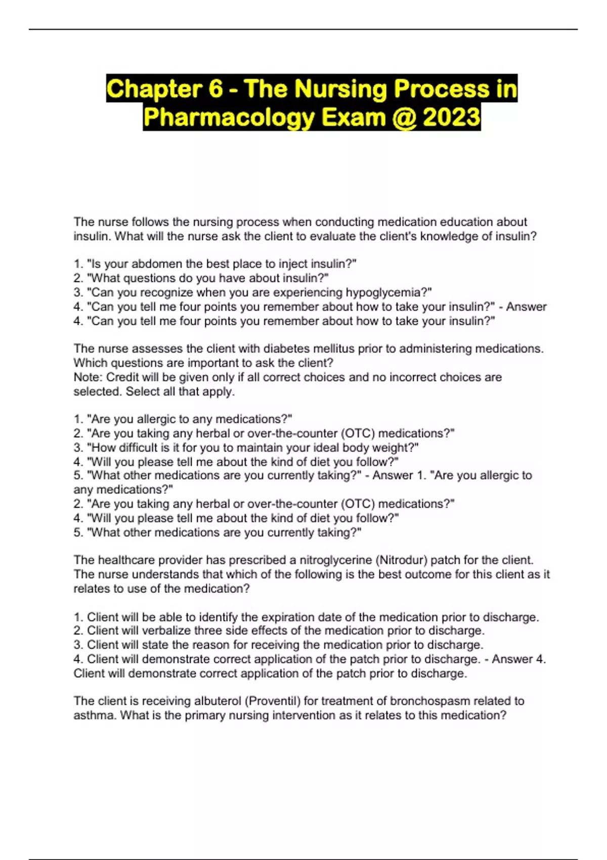 Chapter 6 - The Nursing Process in Pharmacology Exam @ 2023...