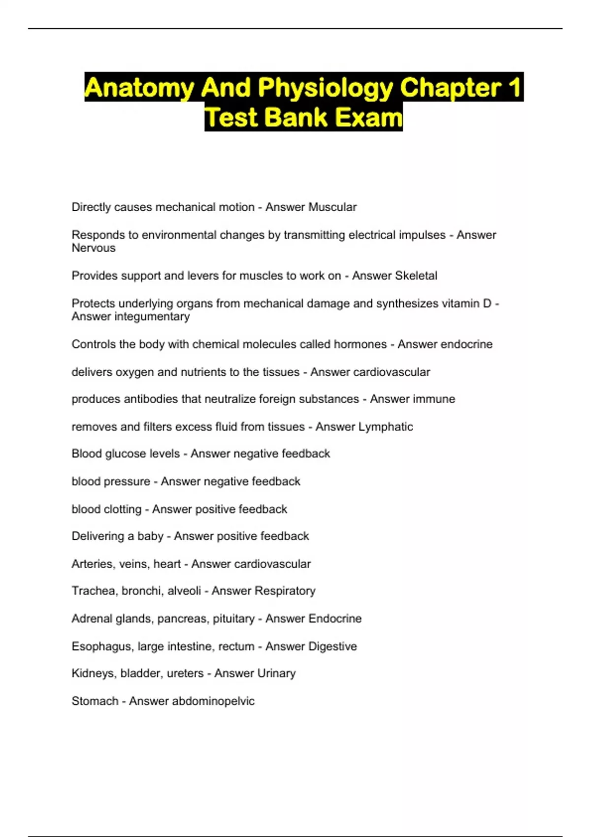 Anatomy And Physiology Chapter 1 Test Bank Exam...