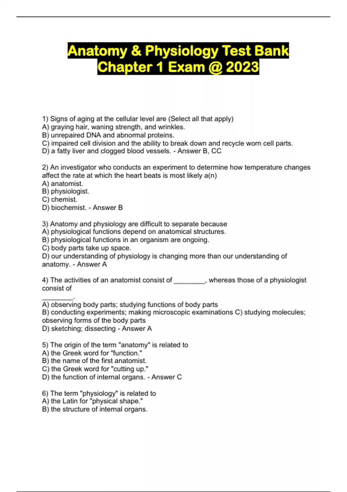 Anatomy & Physiology Test Bank Chapter 1 Exam @ 2023...