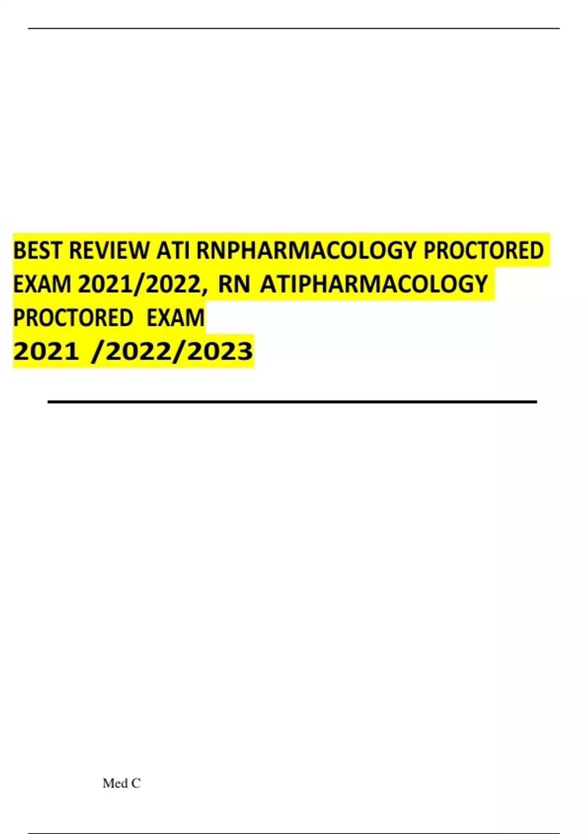 BEST REVIEW ATI RNPHARMACOLOGY PROCTORED EXAM 2021/2022, RN ATIPHARMACOLOGY PROCTORED EXAM 2021 /2022/2023