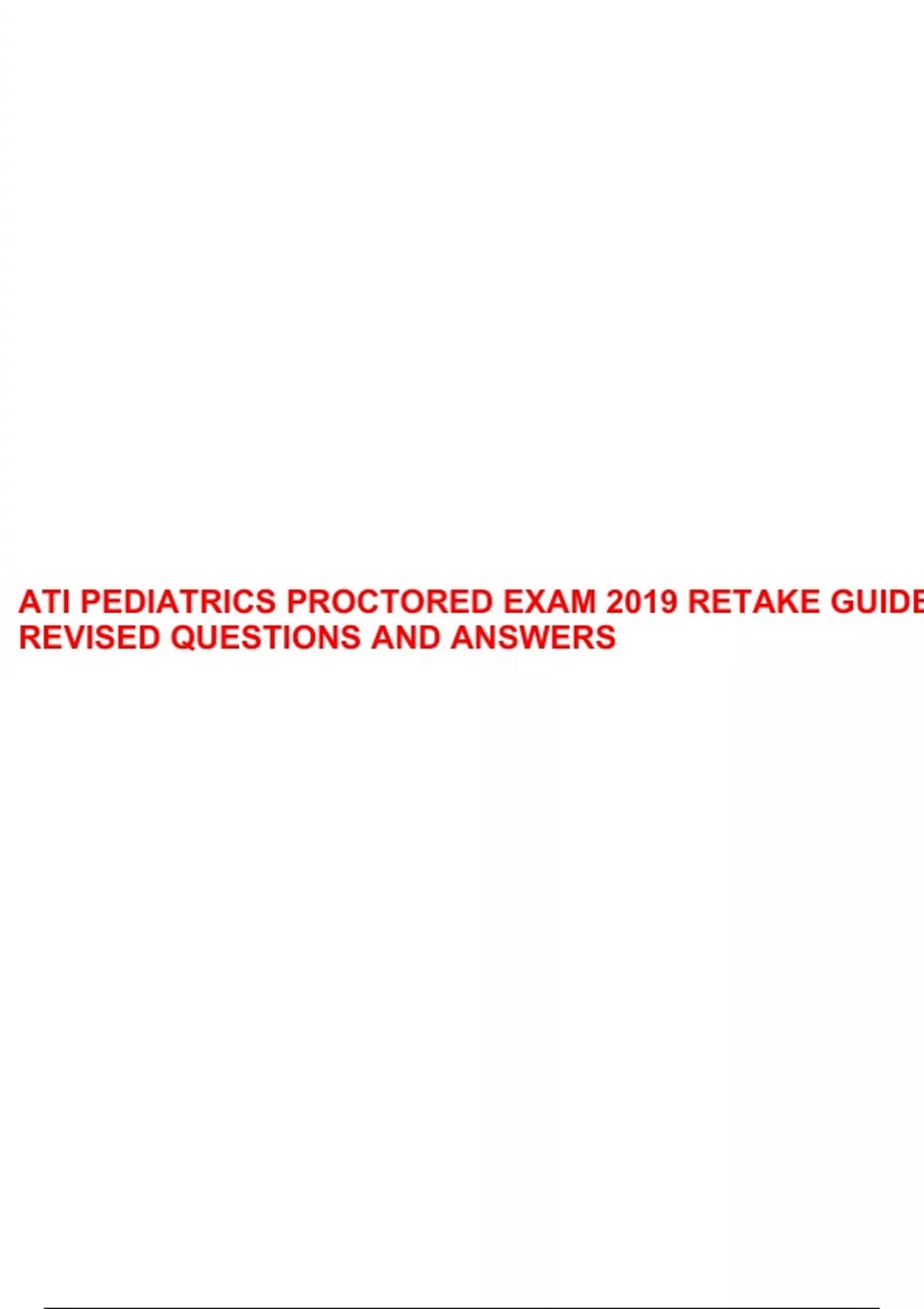 ATI PEDIATRICS PROCTORED EXAM 2019 RETAKE GUIDE REVISED QUESTIONS AND ANSWERS.