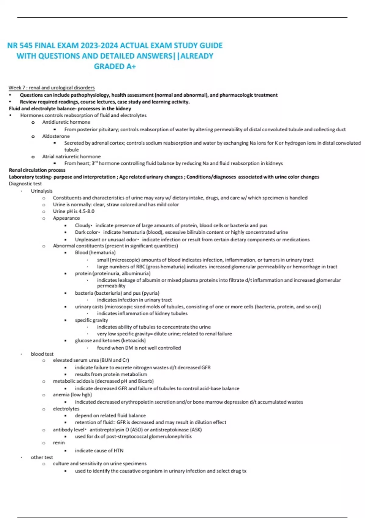 NR 545 FINAL EXAM ACTUAL EXAM STUDY GUIDE WITH QUESTIONS AND DETAILED ANSWERS||ALREADY GRADED A+