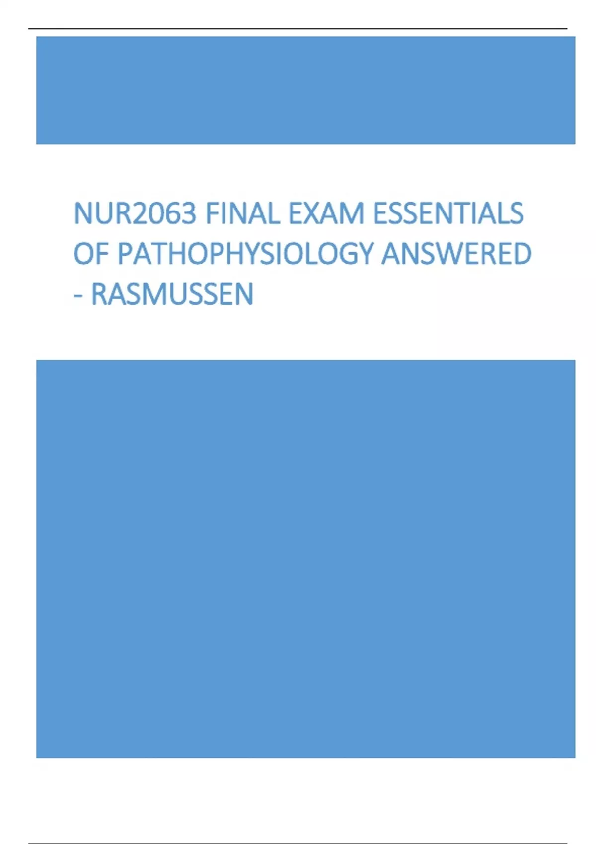 NUR 2063 Final Exam Answered Essentials of Pathophysiology - Rasmussen