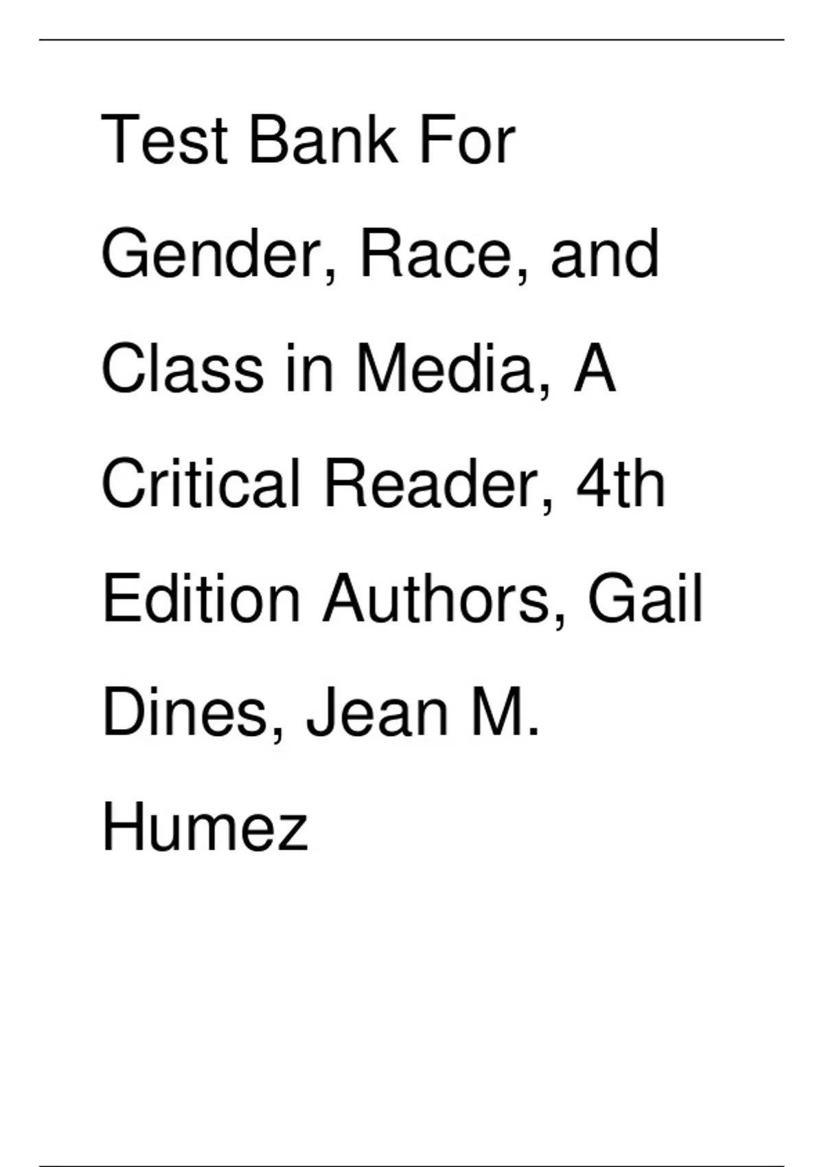 A Complete Test Bank For Gender, Race, and Class in Media, A Critical Reader, 4th Edition Authors, Gail Dines, Jean M. Humez