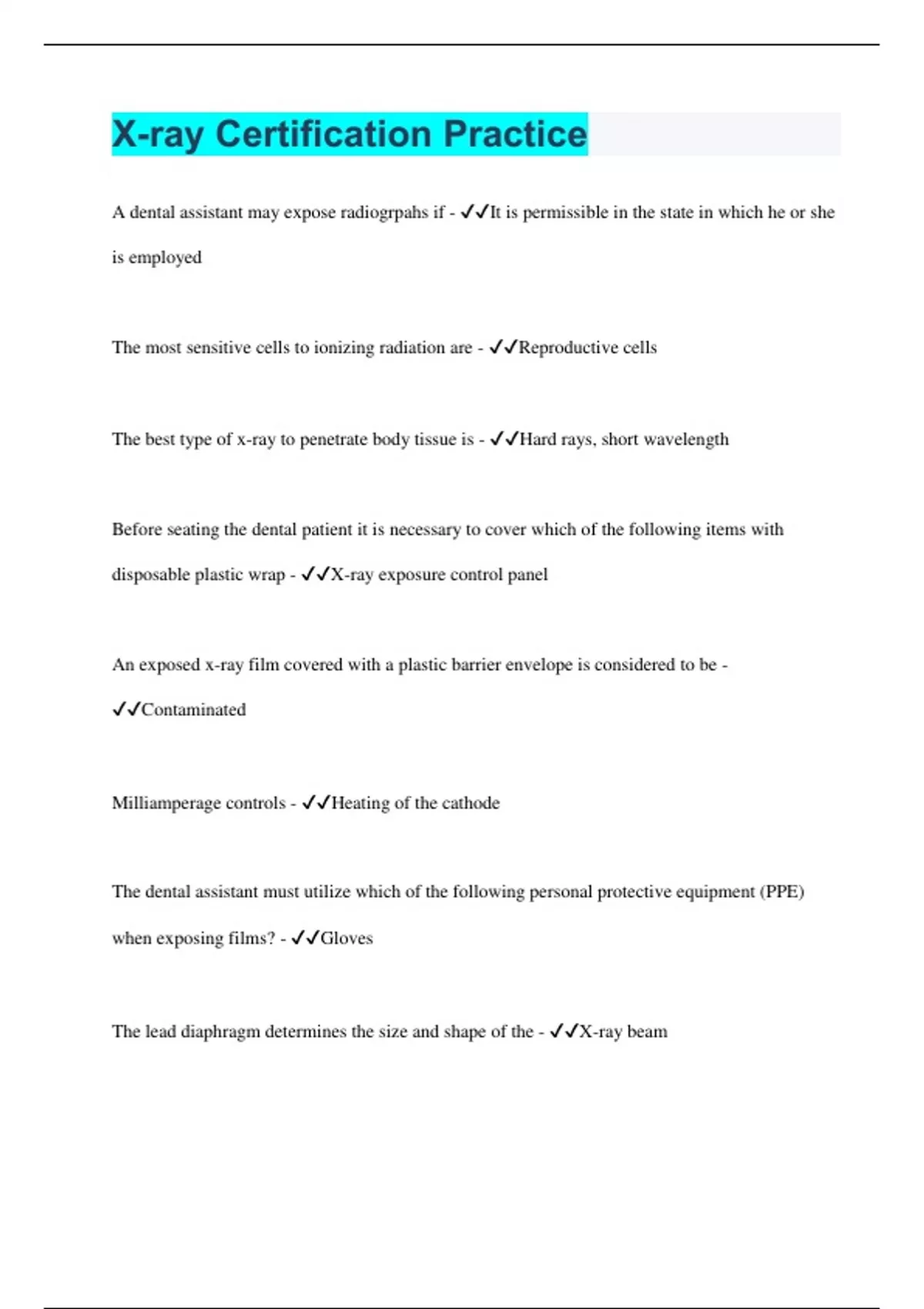 X-ray Certification Practice | 98 Questions with 100% Correct Answers | Verified