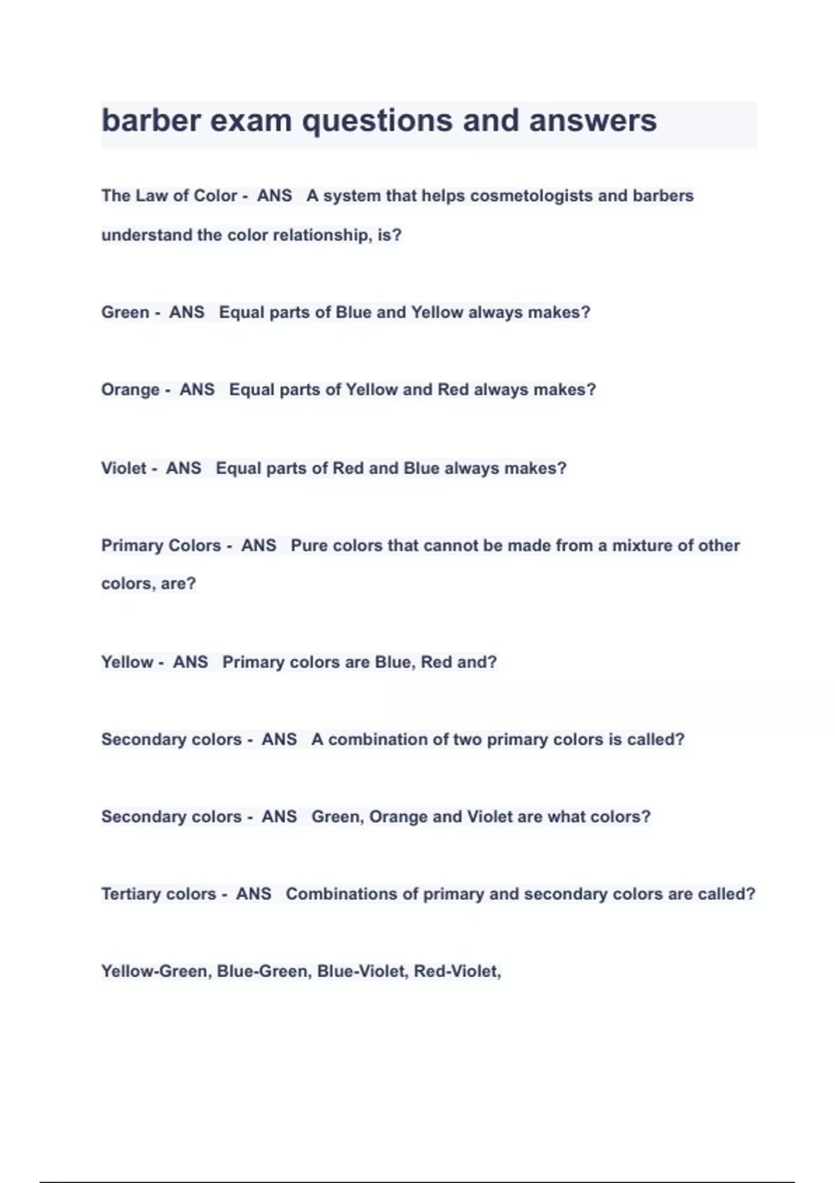 barber exam questions and answers QUESTIONS & ANSWERS 2023 ( A+ GRADED 100% VERIFIED)