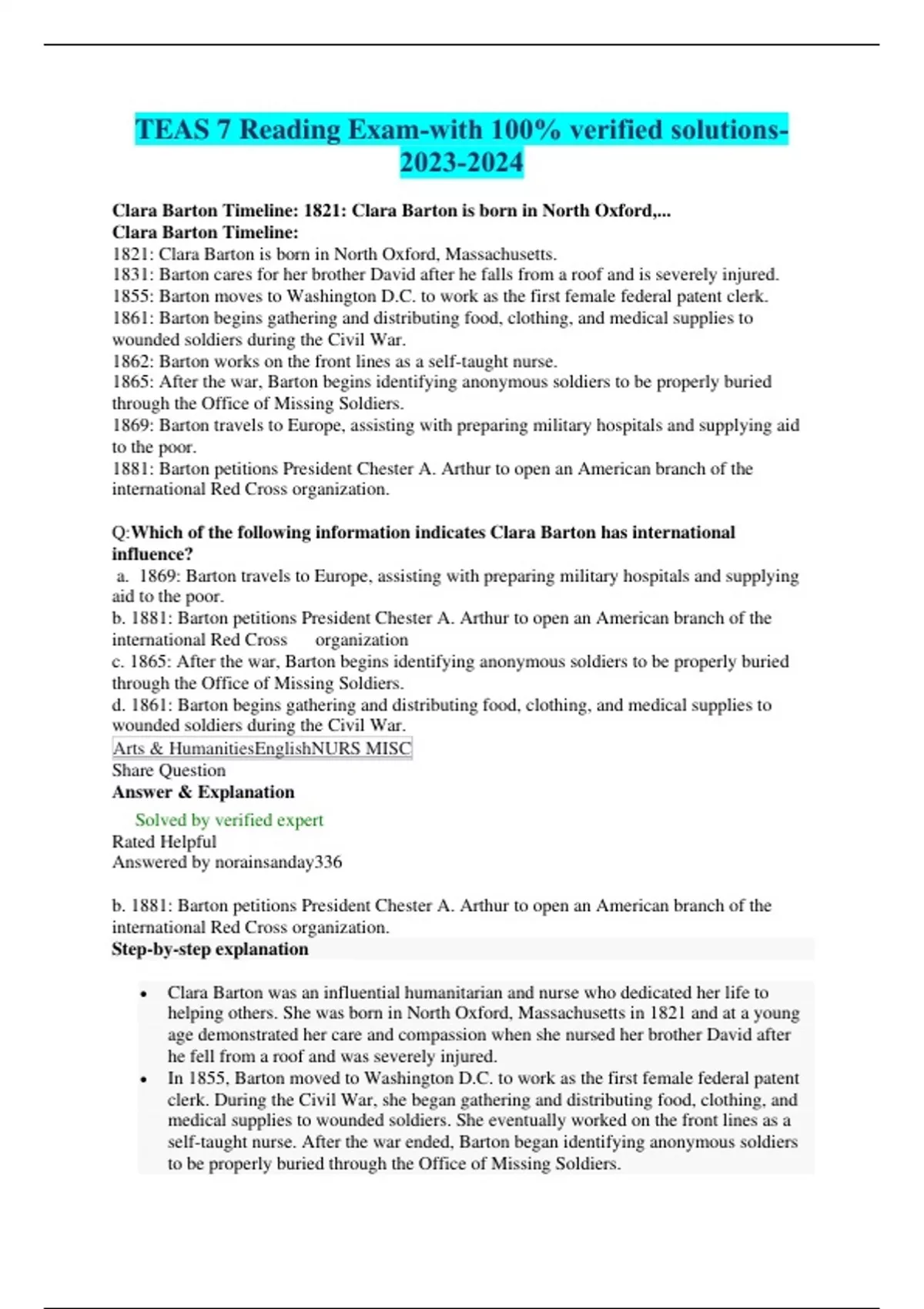 TEAS 7 Reading Exam-with 100% verified solutions-