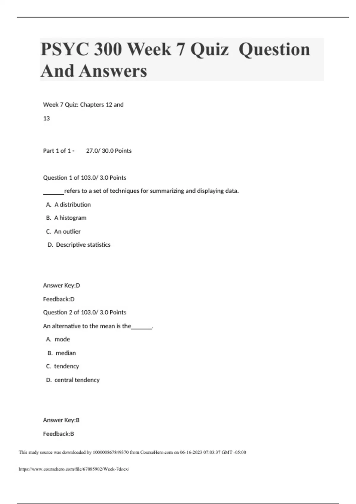 psyc 300 week 7 quiz – question and answers