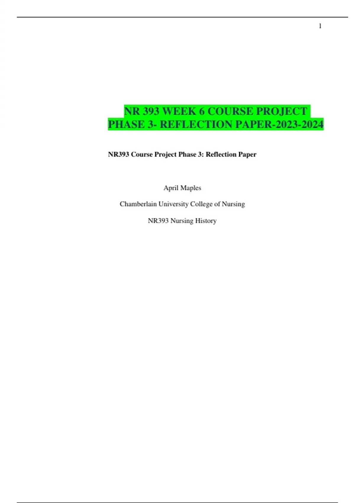 NR 393 WEEK 6 COURSE PROJECT PHASE 3- REFLECTION PAPER-