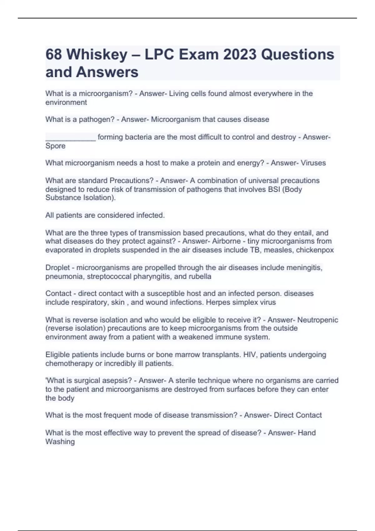 68 whiskey – lpc exam 2023 questions and answers