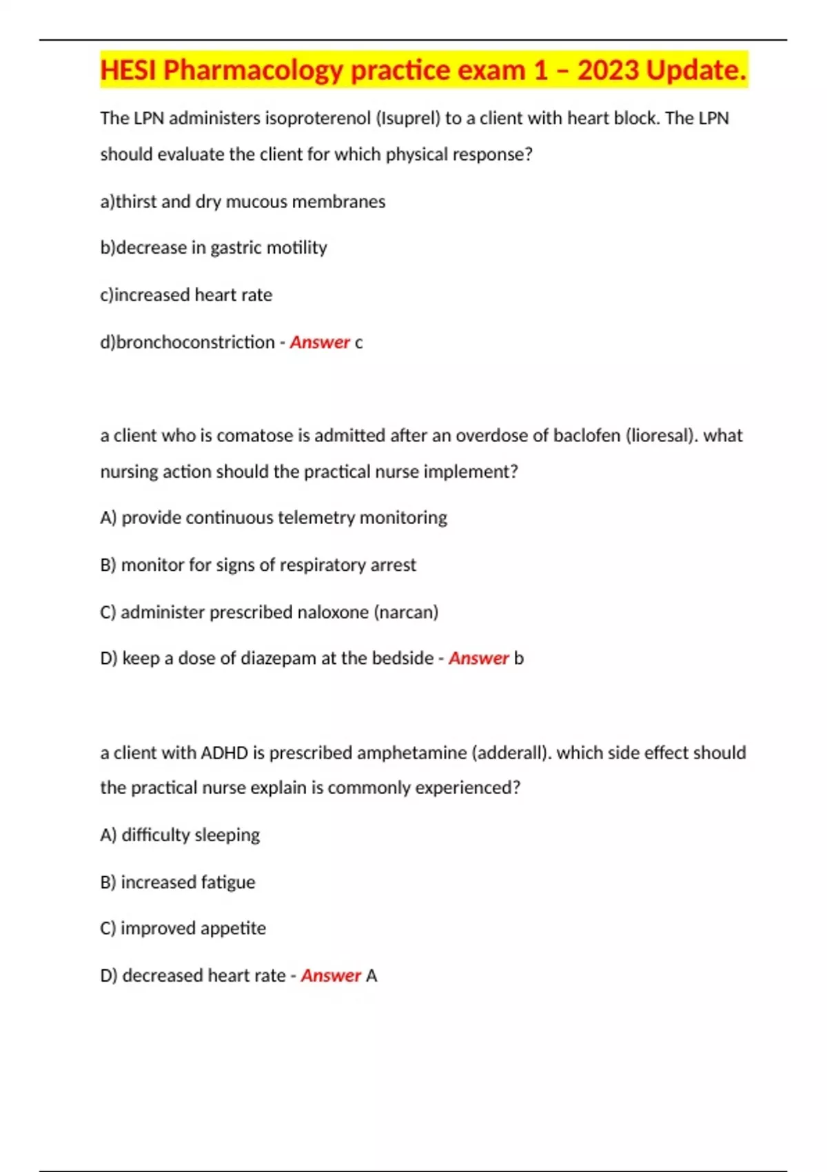 HESI Pharmacology practice exam 1 – 2023 Update.